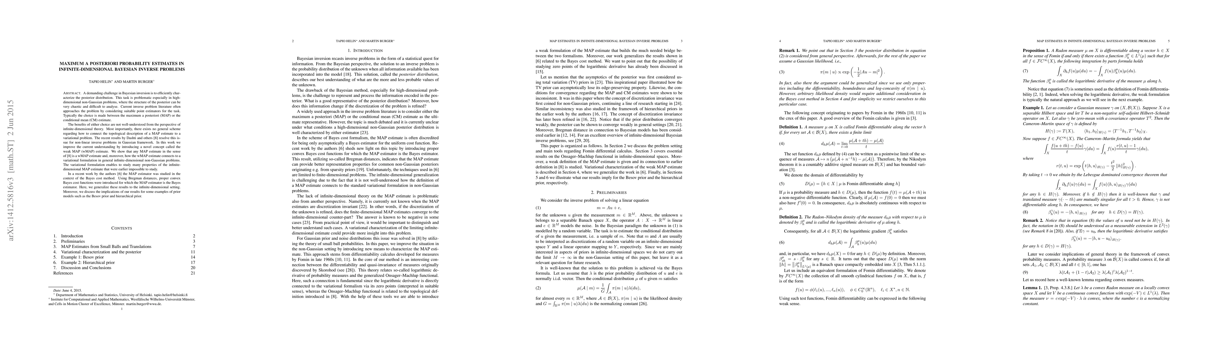 This paper introduces the weak MAP (wMAP) estimate to improve understanding of infinite-dimensional Bayesian inverse problems, showing that any MAP estimate can be represented as a wMAP estimate. It connects the wMAP estimate to a variational formulation, providing new insights into properties previously difficult to study.