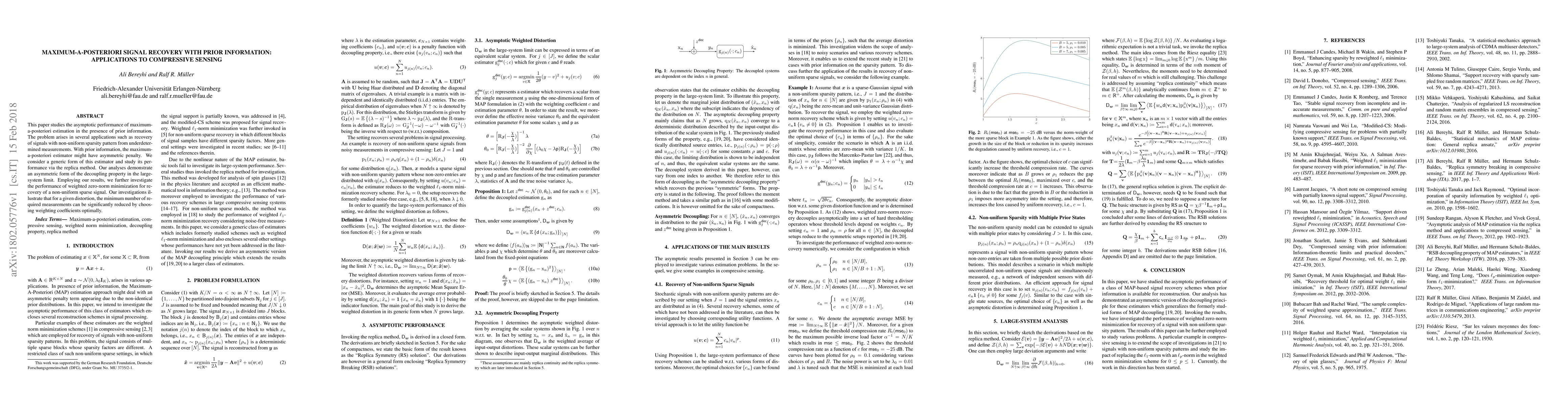 This paper studies the asymptotic performance of maximum-a-posteriori estimation in the presence of prior information. The problem arises in several applications such as recovery of signals with non-uniform sparsity pattern from underdetermined measurements. With prior information, the maximum-a-posteriori estimator might have asymmetric penalty. We consider a generic form of this estimator and study its performance via the replica method. Our analyses demonstrate an asymmetric form of the decoupling property in the large-system limit. Employing our results, we further investigate the performance of weighted zero-norm minimization for recovery of a non-uniform sparse signal. Our investigations illustrate that for a given distortion, the minimum number of required measurements can be significantly reduced by choosing weighting coefficients optimally.