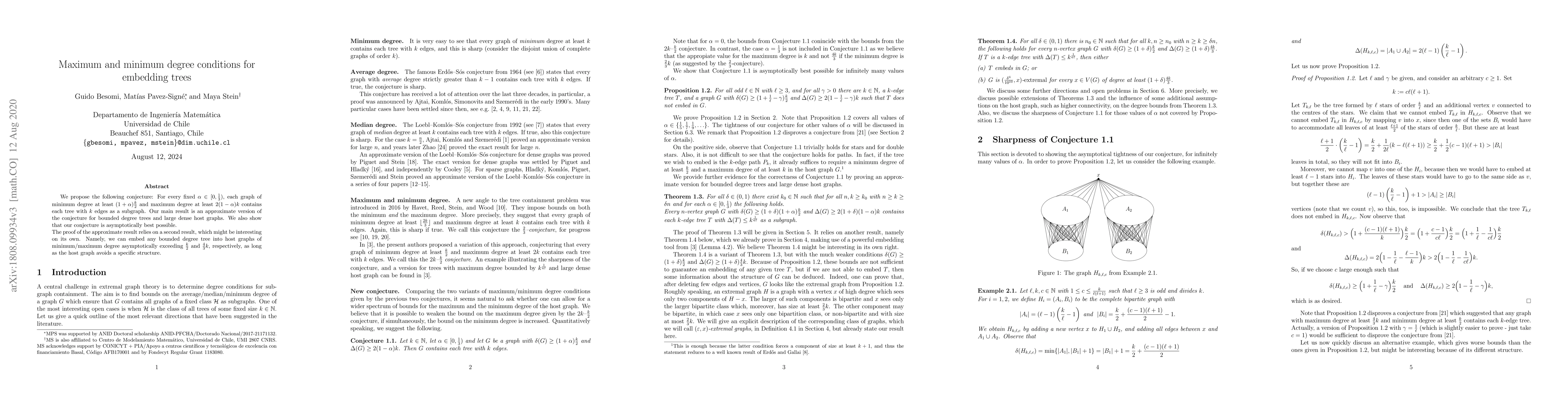 We propose the following conjecture: For every fixed $\alpha\in [0,\frac 13)$, each graph of minimum degree at least $(1+\alpha)\frac k2$ and maximum degree at least $2(1-\alpha)k$ contains each tree with $k$ edges as a subgraph. Our main result is an approximate version of the conjecture for bounded degree trees and large dense host graphs. We also show that our conjecture is asymptotically best possible. The proof of the approximate result relies on a second result, which we believe to be interesting on its own. Namely, we can embed any bounded degree tree into host graphs of minimum/maximum degree asymptotically exceeding $\frac k2$ and $\frac 43k$, respectively, as long as the host graph avoids a specific structure.