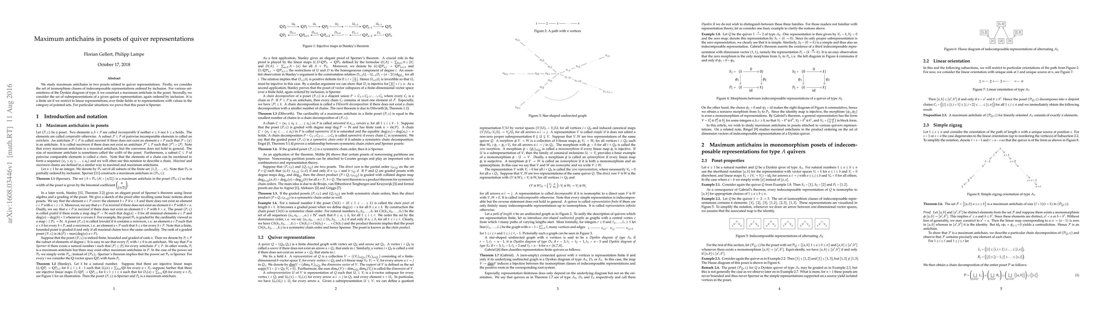 This paper investigates maximum antichains in posets derived from quiver representations, focusing on two scenarios: indecomposable representations ordered by inclusion and subrepresentations of a given representation. Maximum antichains are constructed for various orientations of type A Dynkin diagrams, and the poset of subrepresentations is shown to be Sperner under certain restrictions.