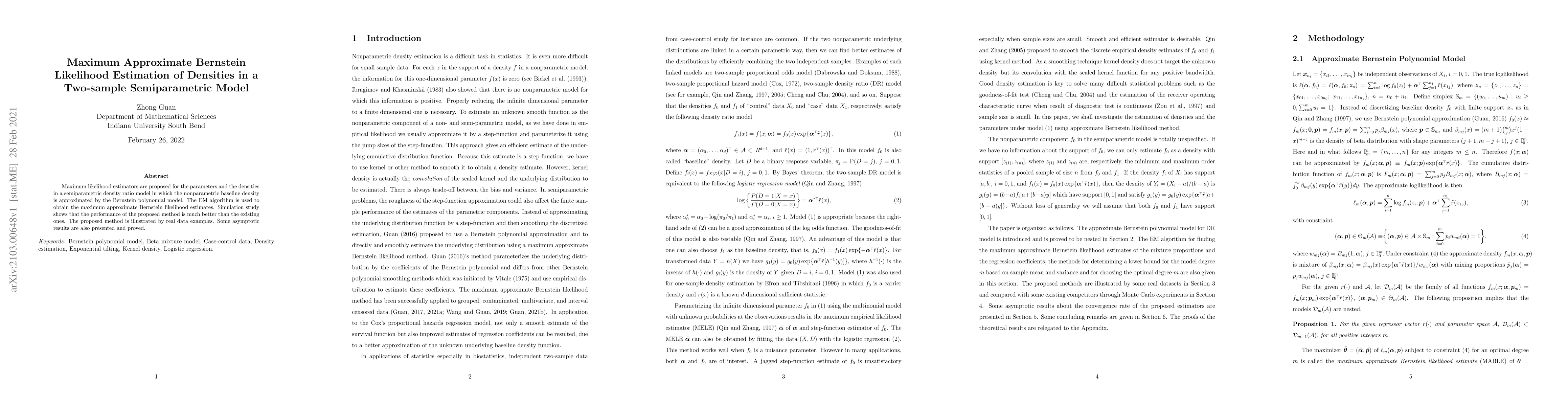 This paper proposes maximum likelihood estimators for parameters and densities in a semiparametric density ratio model using Bernstein polynomial approximations. The EM algorithm is employed to achieve these estimates, which outperform existing methods according to simulation studies and real data examples, with supporting asymptotic results.