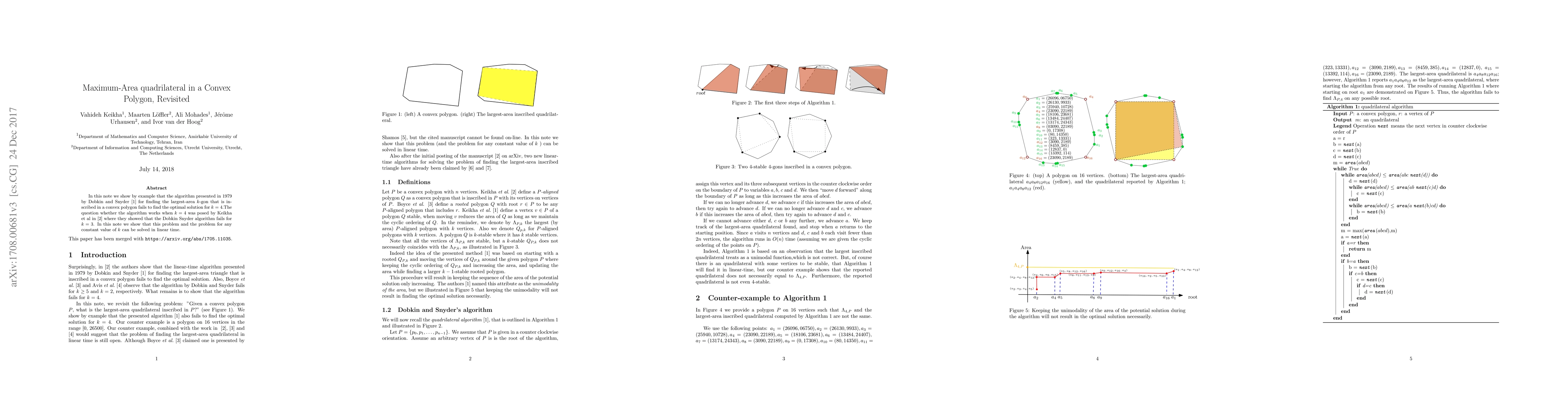 This paper demonstrates that the 1979 Dobkin and Snyder algorithm for finding the largest-area quadrilateral within a convex polygon does not yield the optimal solution. It builds on previous work by Keikha et al. showing similar failures for triangles.