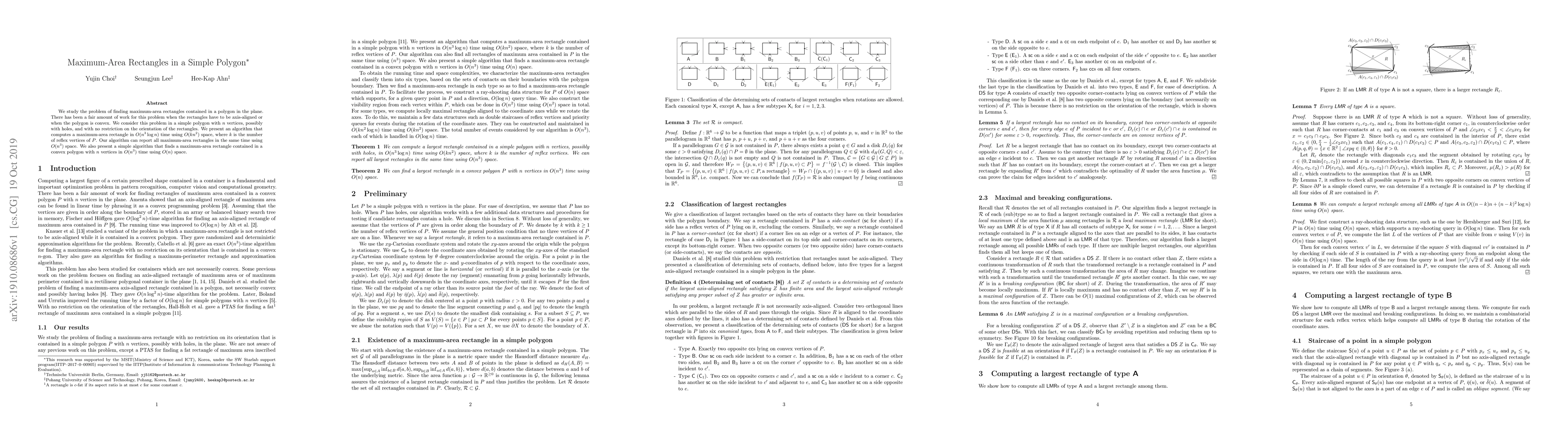 This paper addresses the problem of finding maximum-area rectangles within a simple polygon with or without holes, presenting an algorithm that computes such rectangles in $O(n^3\log n)$ time and $O(kn^2)$ space. It also provides a simpler algorithm for convex polygons in $O(n^3)$ time and $O(n)$ space.