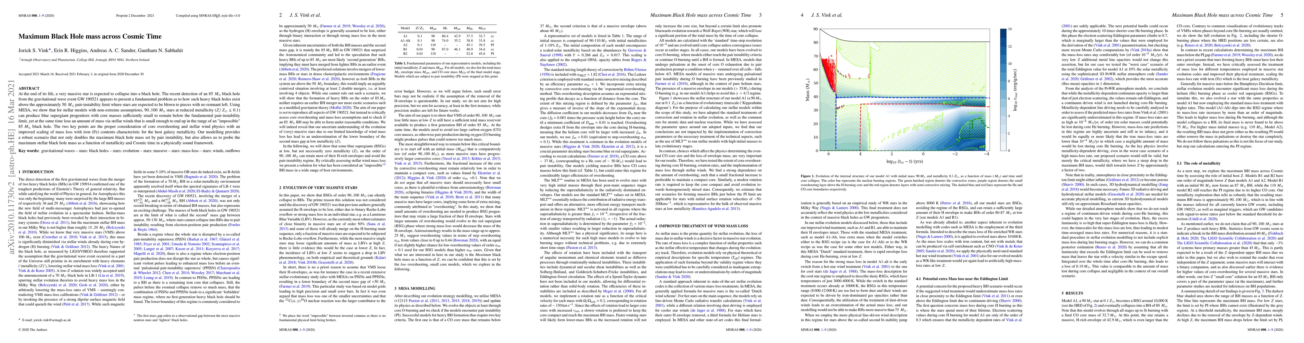 At the end of its life, a very massive star is expected to collapse into a black hole. The recent detection of an 85 Msun black hole from the gravitational wave event GW 190521 appears to present a fundamental problem as to how such heavy black holes exist above the approximately 50 Msun pair-instability limit where stars are expected to be blown to pieces with no remnant left. Using MESA, we show that for stellar models with non-extreme assumptions, 90..100 Msun stars at reduced metallicity (Z/Zsun < 0.1) can produce blue supergiant progenitors with core masses sufficiently small to remain below the fundamental pair-instability limit, yet at the same time lose an amount of mass via stellar winds that is small enough to end up in the range of an "impossible" 85 Msun black hole. The two key points are the proper consideration of core overshooting and stellar wind physics with an improved scaling of mass loss with iron (Fe) contents characteristic for the host galaxy metallicity. Our modelling provides a robust scenario that not only doubles the maximum black hole mass set by pair instability, but also allows us to probe the maximum stellar black hole mass as a function of metallicity and Cosmic time in a physically sound framework.