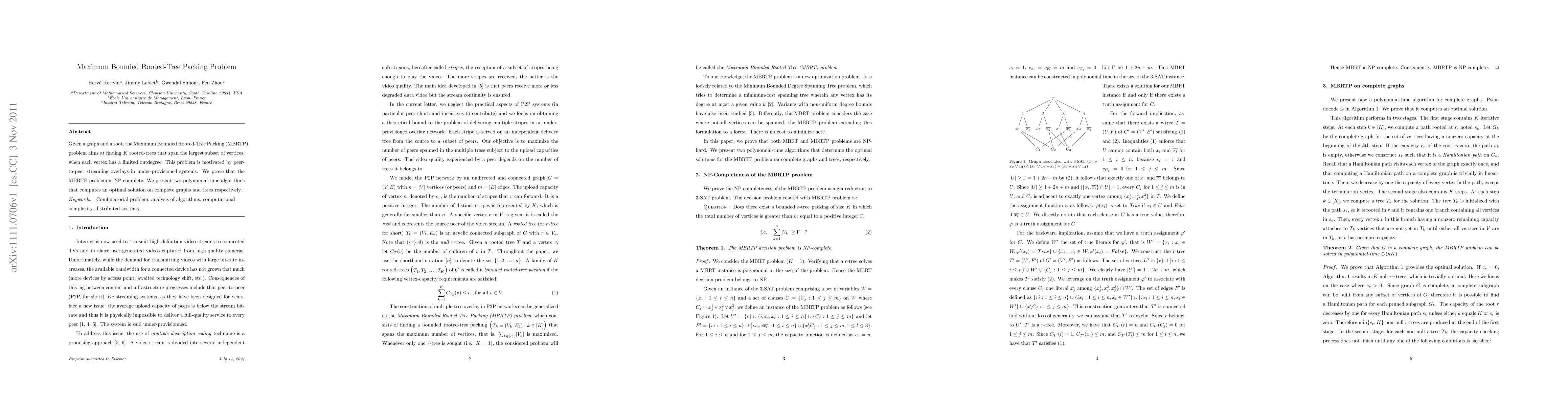 Researchers proved the Maximum Bounded Rooted-Tree Packing problem is NP-complete and developed algorithms to solve it on complete graphs and trees, aiming to optimize peer-to-peer streaming overlays in under-provisioned systems.