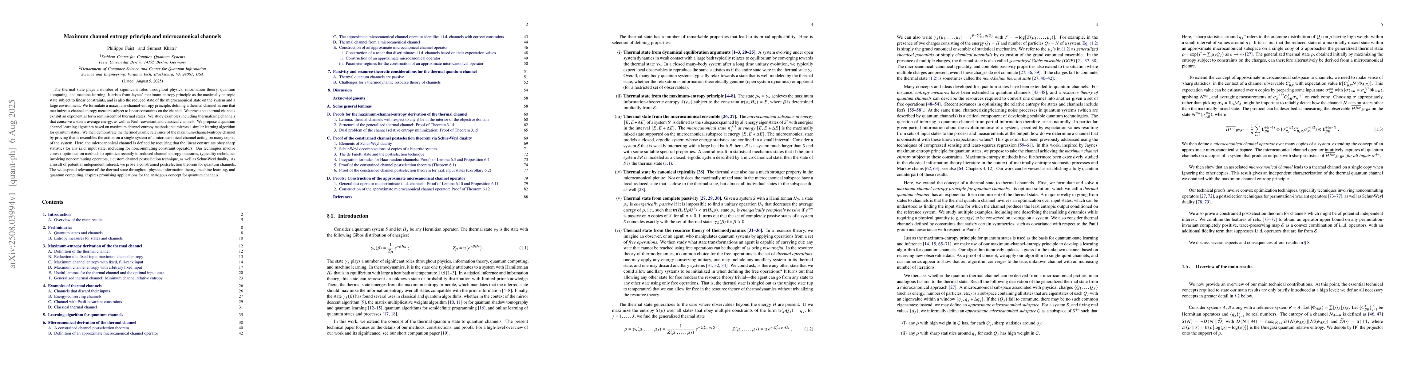 The thermal state plays a number of significant roles throughout physics, information theory, quantum computing, and machine learning. It arises from Jaynes' maximum-entropy principle as the maximally entropic state subject to linear constraints, and is also the reduced state of the microcanonical state on the system and a large environment. We formulate a maximum-channel-entropy principle, defining a thermal channel as one that maximizes a channel entropy measure subject to linear constraints on the channel. We prove that thermal channels exhibit an exponential form reminiscent of thermal states. We study examples including thermalizing channels that conserve a state's average energy, as well as Pauli-covariant and classical channels. We propose a quantum channel learning algorithm based on maximum channel entropy methods that mirrors a similar learning algorithm for quantum states. We then demonstrate the thermodynamic relevance of the maximum-channel-entropy channel by proving that it resembles the action on a single system of a microcanonical channel acting on many copies of the system. Here, the microcanonical channel is defined by requiring that the linear constraints obey sharp statistics for any i.i.d. input state, including for noncommuting constraint operators. Our techniques involve convex optimization methods to optimize recently introduced channel entropy measures, typicality techniques involving noncommuting operators, a custom channel postselection technique, as well as Schur-Weyl duality. As a result of potential independent interest, we prove a constrained postselection theorem for quantum channels. The widespread relevance of the thermal state throughout physics, information theory, machine learning, and quantum computing, inspires promising applications for the analogous concept for quantum channels.