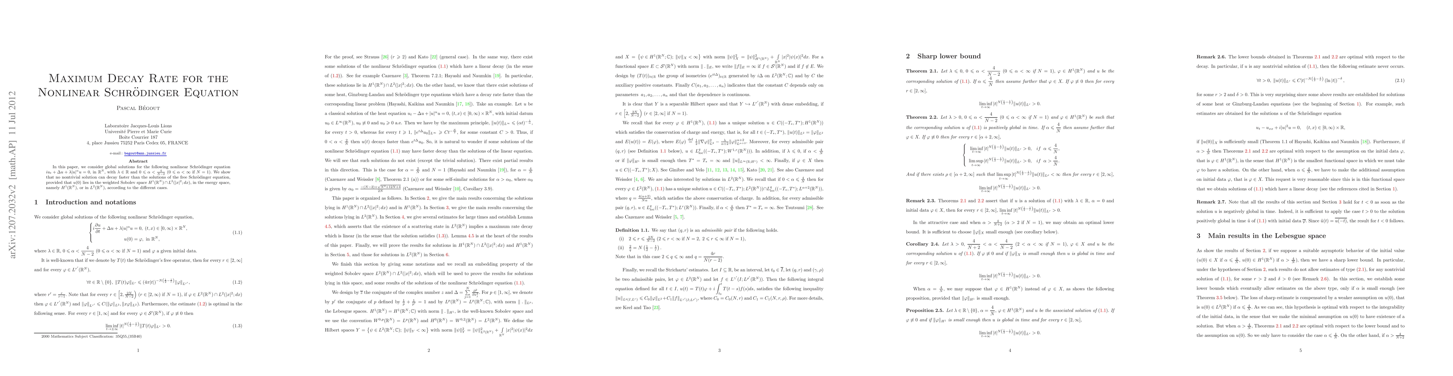 In this paper, we consider global solutions for the following nonlinear Schr\"odinger equation $iu_t+\Delta u+\lambda|u|^\alpha u=0,$ in $\R^N,$ with $\lambda\in\R$ and $0\le\alpha<\frac{4}{N-2}$ $(0\le\alpha<\infty$ if $N=1).$ We show that no nontrivial solution can decay faster than the solutions of the free Schr\"odinger equation, provided that $u(0)$ lies in the weighted Sobolev space $H^1(\R^N)\cap L^2(|x|^2;dx),$ in the energy space, namely $H^1(\R^N),$ or in $L^2(\R^N),$ according to the different cases.