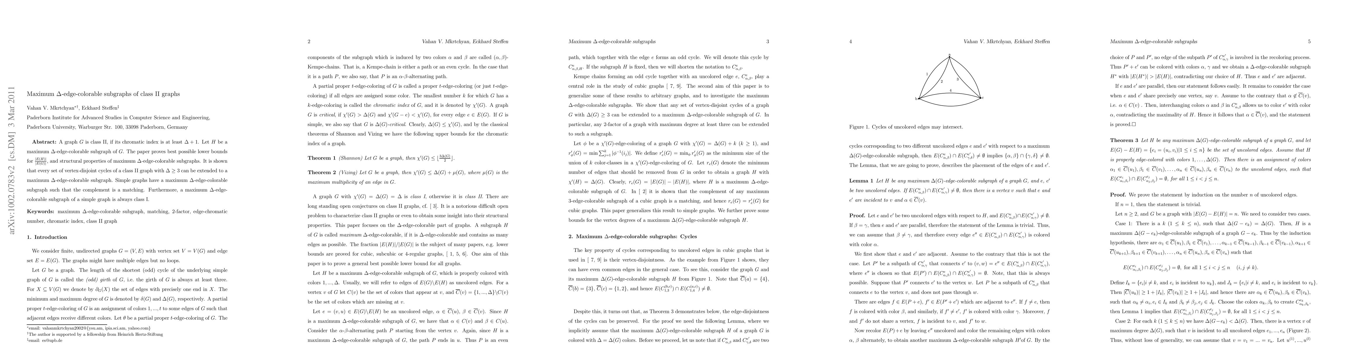 The paper presents novel theorems and proofs regarding the extension of vertex-disjoint cycles and the structural properties of maximum $\Delta$-edge-colorable subgraphs in class II graphs.