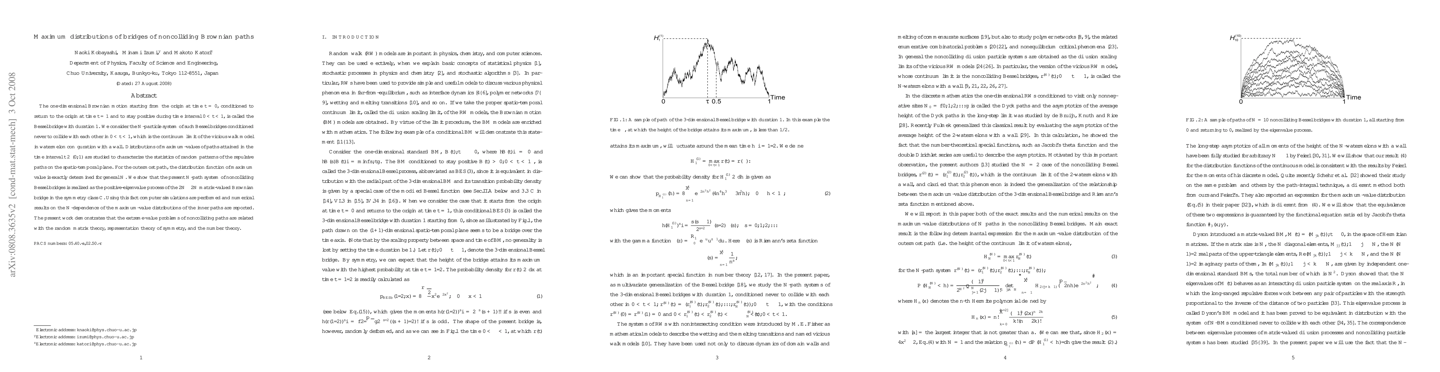 This paper studies the maximum distributions of noncolliding Brownian paths, known as Bessel bridges, in an $N$-particle system. The distribution of the maximum value for the outermost path is exactly determined, and the system is linked to the positive-eigenvalue process of a matrix-valued Brownian bridge, revealing connections to random matrix theory and representation theory.