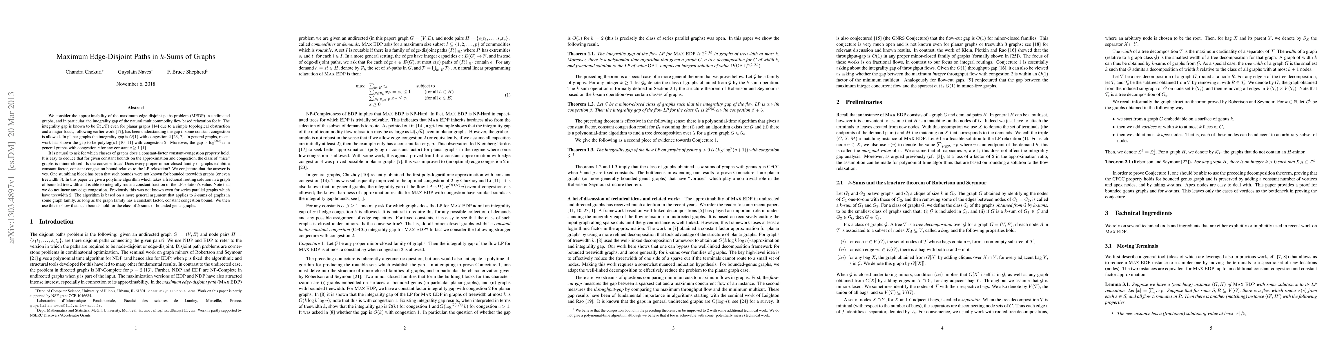 We consider the approximability of the maximum edge-disjoint paths problem (MEDP) in undirected graphs, and in particular, the integrality gap of the natural multicommodity flow based relaxation for it. The integrality gap is known to be $\Omega(\sqrt{n})$ even for planar graphs due to a simple topological obstruction and a major focus, following earlier work, has been understanding the gap if some constant congestion is allowed. In this context, it is natural to ask for which classes of graphs does a constant-factor constant-congestion property hold. It is easy to deduce that for given constant bounds on the approximation and congestion, the class of "nice" graphs is nor-closed. Is the converse true? Does every proper minor-closed family of graphs exhibit a constant factor, constant congestion bound relative to the LP relaxation? We conjecture that the answer is yes. One stumbling block has been that such bounds were not known for bounded treewidth graphs (or even treewidth 3). In this paper we give a polytime algorithm which takes a fractional routing solution in a graph of bounded treewidth and is able to integrally route a constant fraction of the LP solution's value. Note that we do not incur any edge congestion. Previously this was not known even for series parallel graphs which have treewidth 2. The algorithm is based on a more general argument that applies to $k$-sums of graphs in some graph family, as long as the graph family has a constant factor, constant congestion bound. We then use this to show that such bounds hold for the class of $k$-sums of bounded genus graphs.
