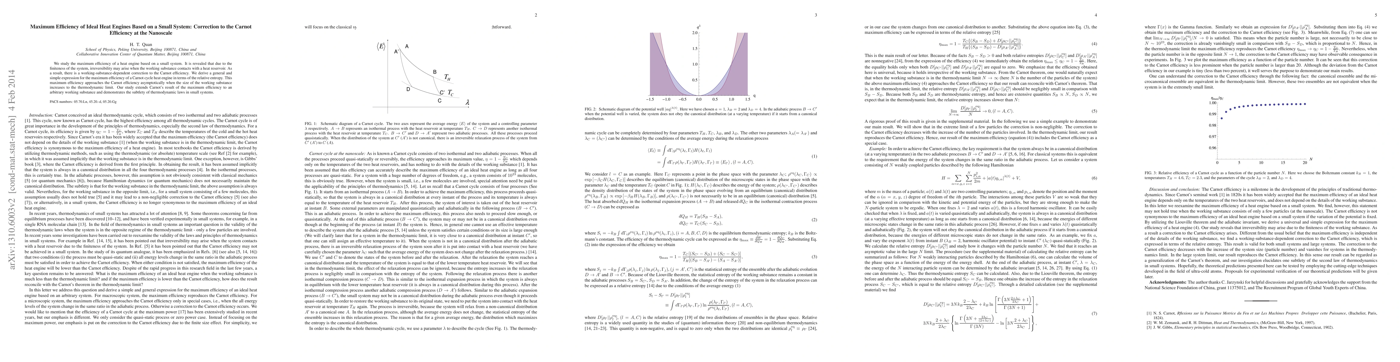 This paper investigates the maximum efficiency of nanoscale Carnot cycle heat engines, revealing that irreversibility due to system finiteness introduces a working-substance-dependent correction to the traditional Carnot efficiency. The study derives a general expression for maximum efficiency in terms of relative entropy and shows it approaches the usual Carnot efficiency as the system size increases.