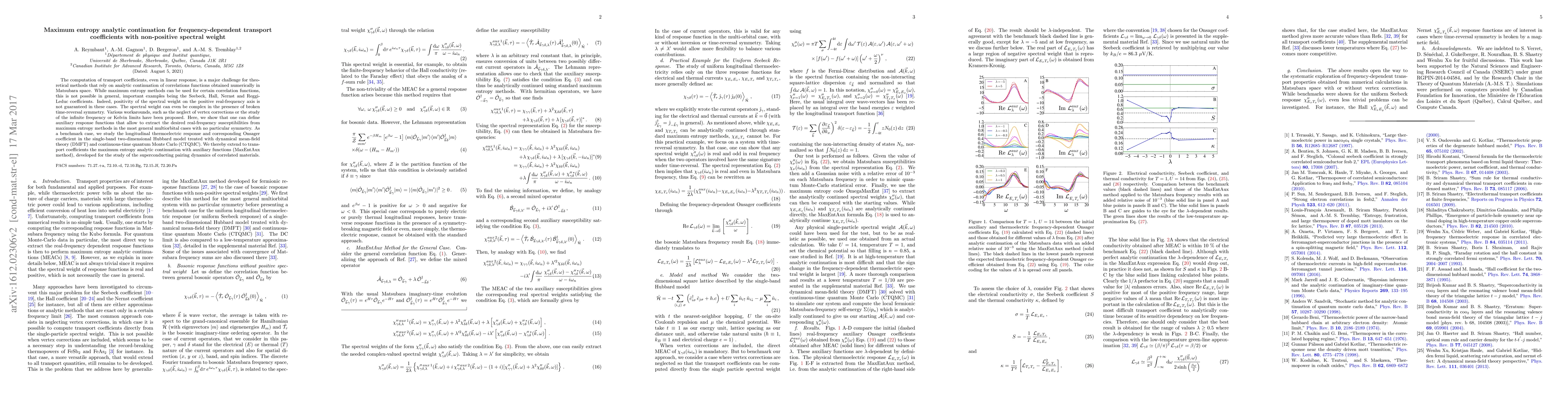 This paper proposes a method to compute frequency-dependent transport coefficients using maximum entropy analytic continuation, addressing the challenge of non-positive spectral weight. The MaxEntAux method introduces auxiliary response functions to extract real-frequency susceptibilities, demonstrated through the longitudinal thermoelectric response in the Hubbard model.