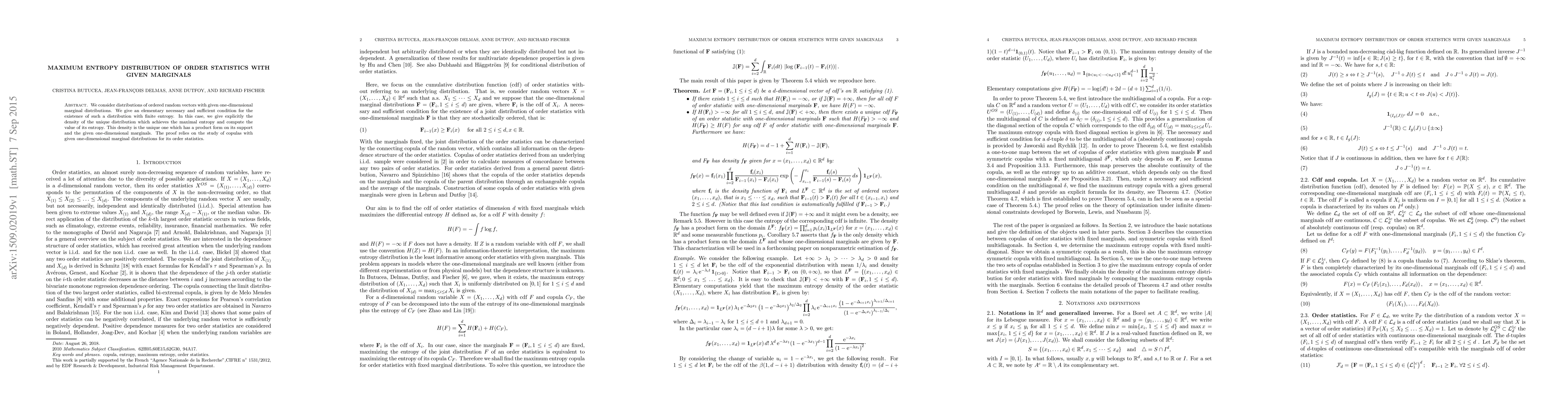 Researchers developed a method to create distributions of ordered random vectors with given one-dimensional marginals, achieving maximum entropy, and found that the resulting density has a product form on its support.