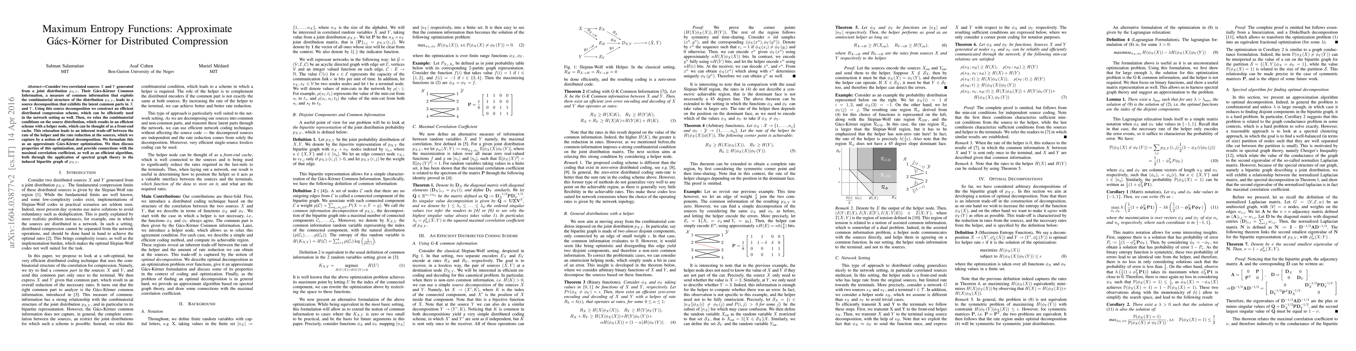 Researchers develop a new method for efficient distributed compression using a concept called maximum entropy functions, which optimizes the trade-off between data compression rates.