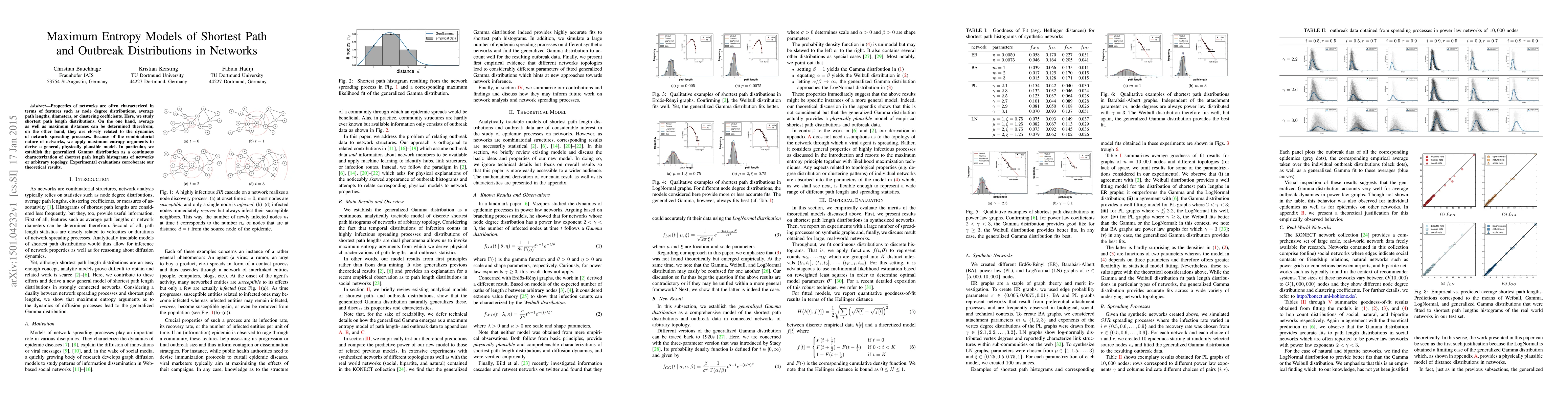 This paper develops a maximum entropy model to derive the generalized Gamma distribution for shortest path length distributions in networks, providing a continuous characterization of these distributions. Experimental evaluations support the theoretical model's accuracy in describing network spreading dynamics.