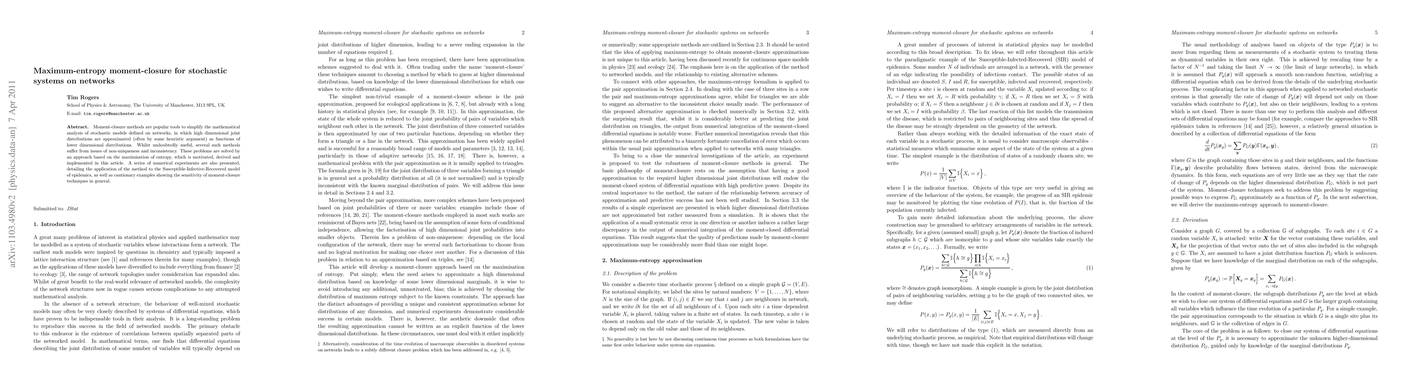This paper proposes a maximum-entropy moment-closure method to address non-uniqueness and inconsistency in stochastic network models, demonstrating its application to epidemic models and highlighting the general sensitivity of moment-closure techniques. Numerical experiments validate the approach's effectiveness.