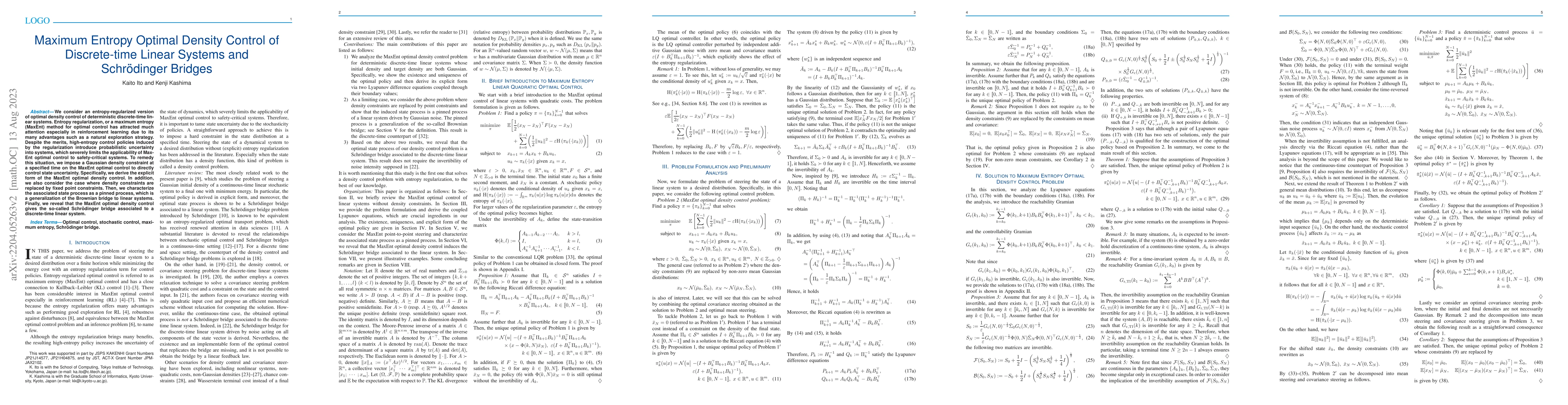 This paper develops an entropy-regularized optimal density control method for discrete-time linear systems, addressing the probabilistic uncertainty introduced by high-entropy control policies. It introduces a Gaussian density constraint to manage state uncertainty and characterizes the resulting state process as a pinned process, analogous to a Brownian bridge.