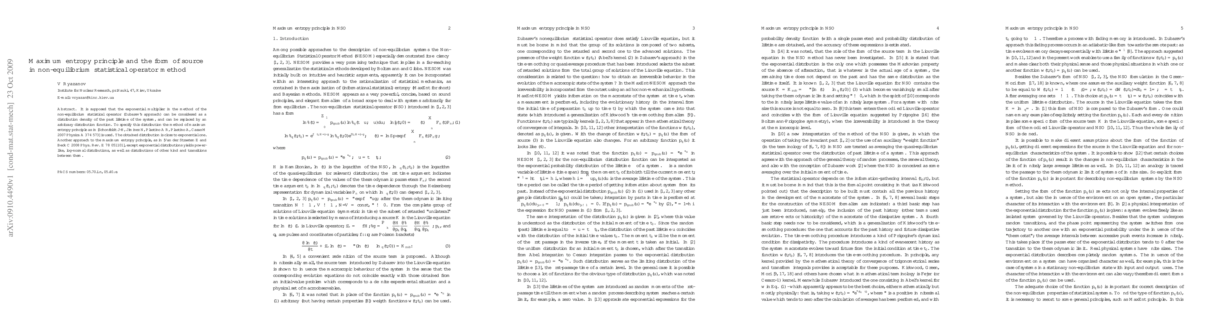 This paper explores the non-equilibrium statistical operator method by proposing that the exponential multiplier can be replaced with an arbitrary distribution function. The maximum entropy principle is employed to specify this distribution, yielding results close to exponential, while alternative approaches produce power-like, log-normal, and other types of distributions.