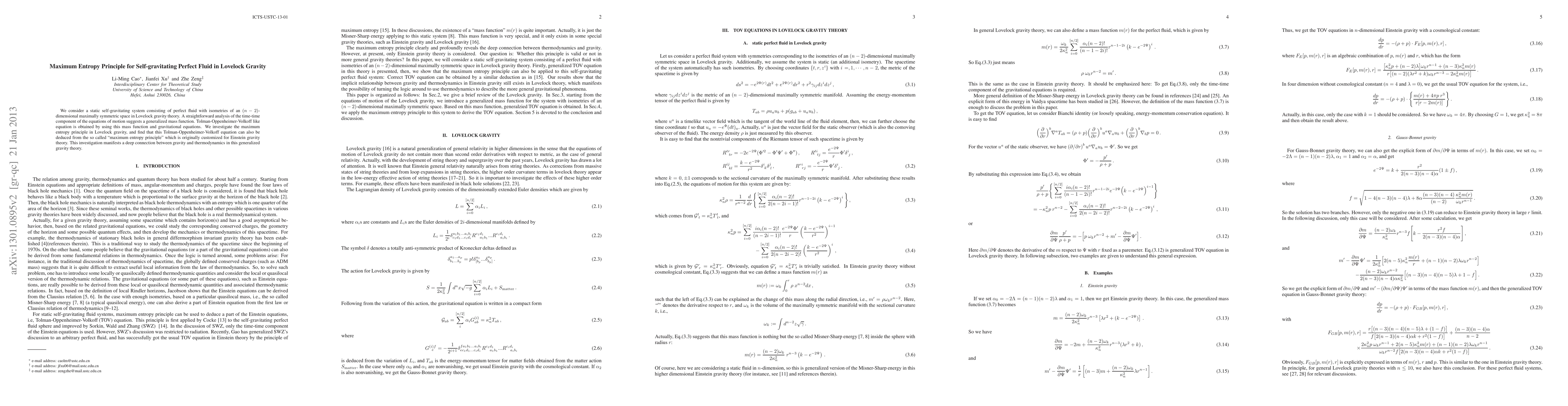 The research applies the maximum entropy principle to self-gravitating perfect fluids in Lovelock gravity, deriving the generalized Tolman-Oppenheimer-Volkoff (TOV) equation using only the time-time component of gravitational equations as a constraint.