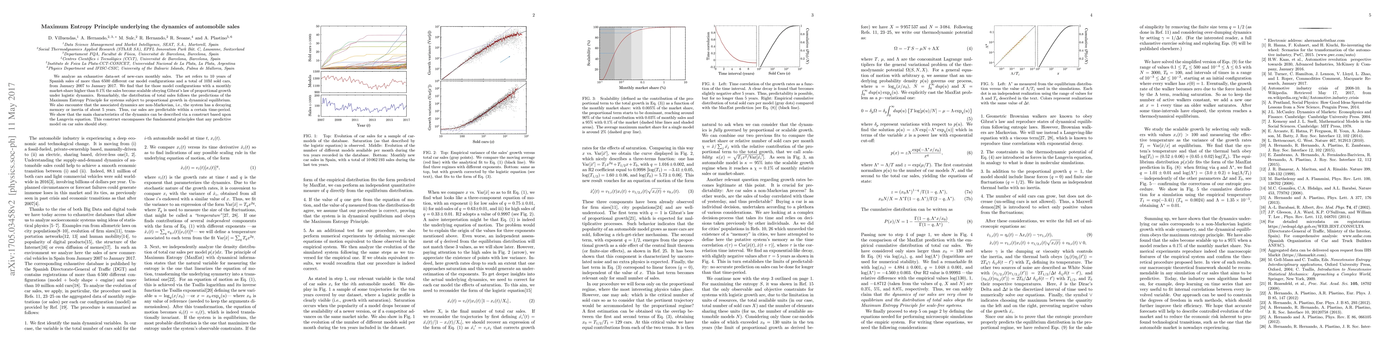 We analyze an exhaustive data-set of new-cars monthly sales. The set refers to 10 years of Spanish sales of more than 6500 different car model configurations and a total of 10M sold cars, from January 2007 to January 2017. We find that for those model configurations with a monthly market-share higher than 0.1% the sales become scalable obeying Gibrat's law of proportional growth under logistic dynamics. Remarkably, the distribution of total sales follows the predictions of the Maximum Entropy Principle for systems subject to proportional growth in dynamical equilibrium. We also encounter that the associated dynamics are non-Markovian, i.e., the system has a decaying memory or inertia of about 5 years. Thus, car sales are predictable within a certain time-period. We show that the main characteristics of the dynamics can be described via a construct based upon the Langevin equation. This construct encompasses the fundamental principles that any predictive model on car sales should obey.