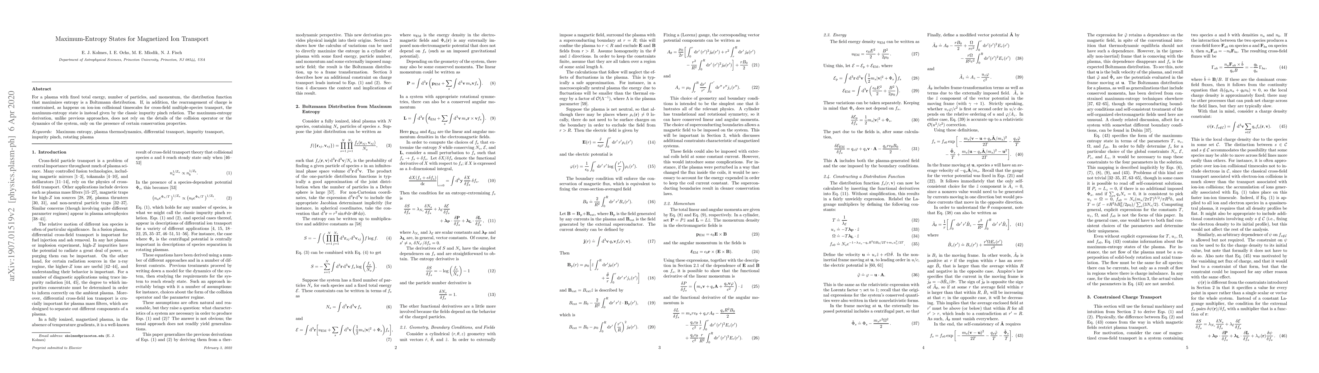 Researchers found that for magnetized ion transport with certain constraints, the maximum entropy state follows a classic impurity pinch relation rather than a Boltzmann distribution. This discovery sheds light on how plasma behavior changes under specific conditions.