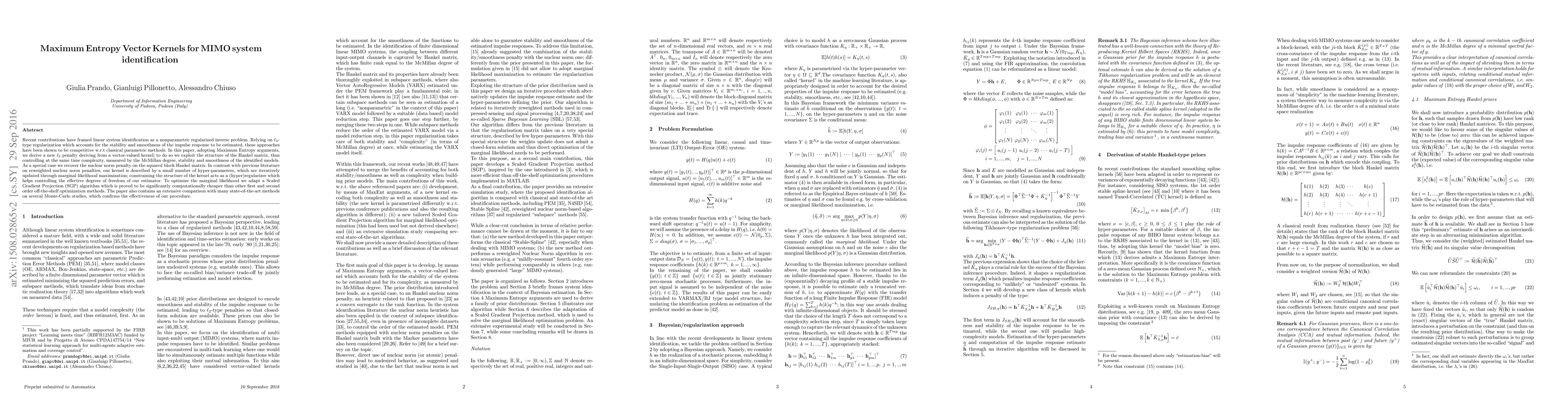 Recent contributions have framed linear system identification as a nonparametric regularized inverse problem. Relying on $\ell_2$-type regularization which accounts for the stability and smoothness of the impulse response to be estimated, these approaches have been shown to be competitive w.r.t classical parametric methods. In this paper, adopting Maximum Entropy arguments, we derive a new $\ell_2$ penalty deriving from a vector-valued kernel; to do so we exploit the structure of the Hankel matrix, thus controlling at the same time complexity, measured by the McMillan degree, stability and smoothness of the identified models. As a special case we recover the nuclear norm penalty on the squared block Hankel matrix. In contrast with previous literature on reweighted nuclear norm penalties, our kernel is described by a small number of hyper-parameters, which are iteratively updated through marginal likelihood maximization; constraining the structure of the kernel acts as a (hyper)regularizer which helps controlling the effective degrees of freedom of our estimator. To optimize the marginal likelihood we adapt a Scaled Gradient Projection (SGP) algorithm which is proved to be significantly computationally cheaper than other first and second order off-the-shelf optimization methods. The paper also contains an extensive comparison with many state-of-the-art methods on several Monte-Carlo studies, which confirms the effectiveness of our procedure.