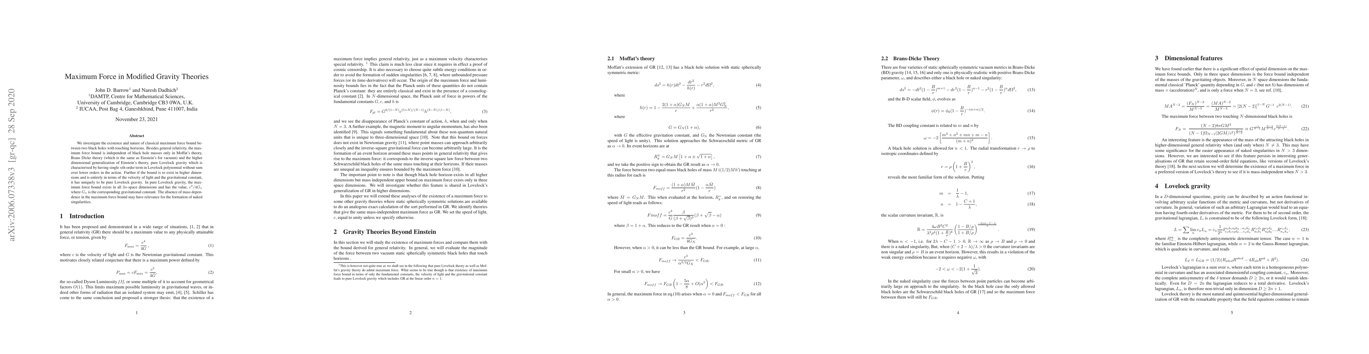 This paper explores the classical maximum force bound between two black holes in modified gravity theories, finding that only pure Lovelock gravity maintains a mass-independent maximum force bound, expressed as $c^4/4G_n$, which may impact the formation of naked singularities.