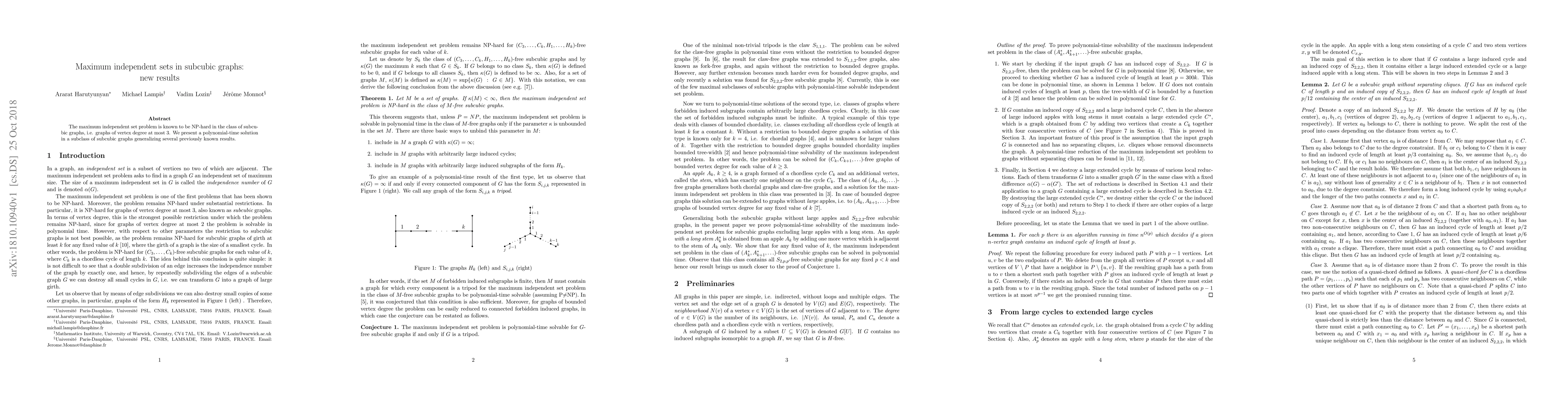 This paper presents a polynomial-time algorithm for solving the maximum independent set problem in a subclass of subcubic graphs, extending previous results and offering new insights into this NP-hard problem.