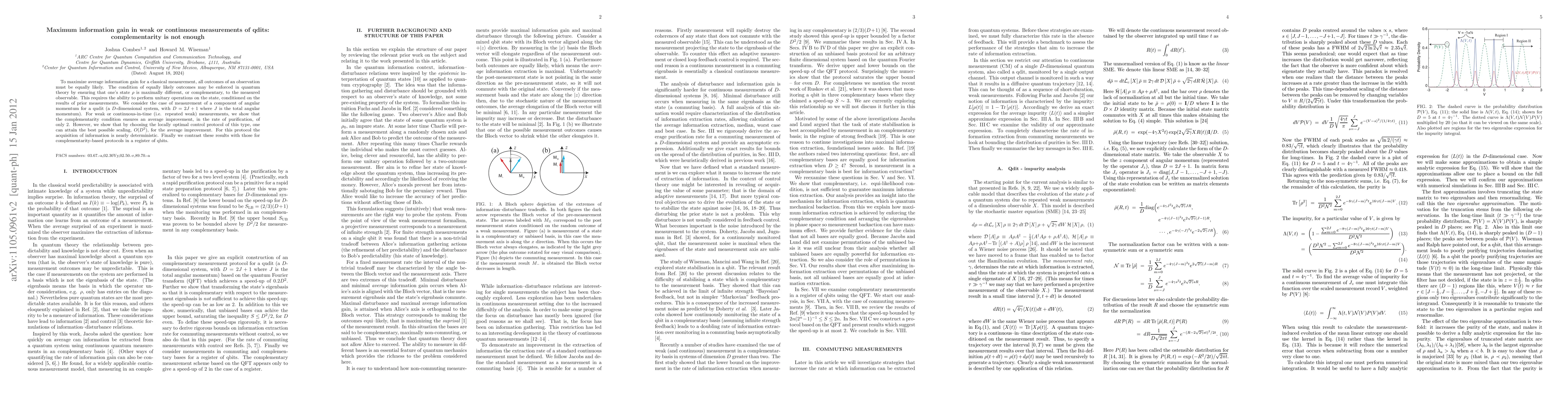 This paper explores the maximization of information gain in weak or continuous measurements of qudits, demonstrating that while complementarity ensures an average improvement of only 2, optimal control protocols can achieve the best scaling of $O(D^{2})$, leading to nearly deterministic information acquisition. It contrasts these findings with complementarity-based protocols for qubit registers.
