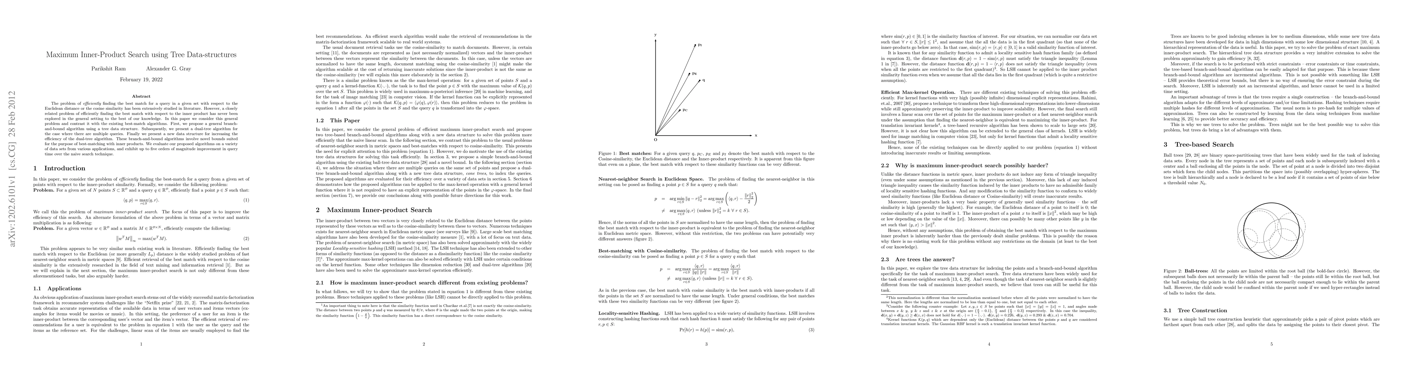 Researchers propose a new algorithm for efficiently finding the best match with respect to inner product using tree data structures, achieving up to five orders of magnitude improvement in query time.