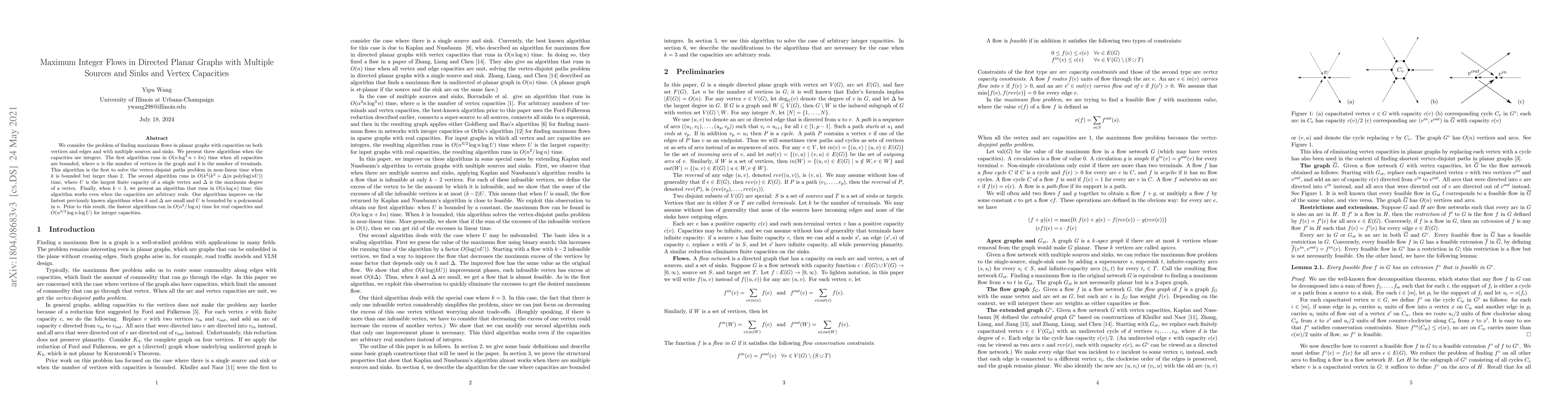 This paper presents three efficient algorithms for finding maximum integer flows in directed planar graphs with vertex and edge capacities, multiple sources, and sinks. The first algorithm runs in near-linear time for bounded capacities, the second in $O(k^2(k^3 + \Delta) n \text{ polylog} (nU))$ time, and the third in $O(n \log n)$ time when $k=3$, outperforming previous methods for small $k$, $\Delta$, and polynomially bounded $U$.