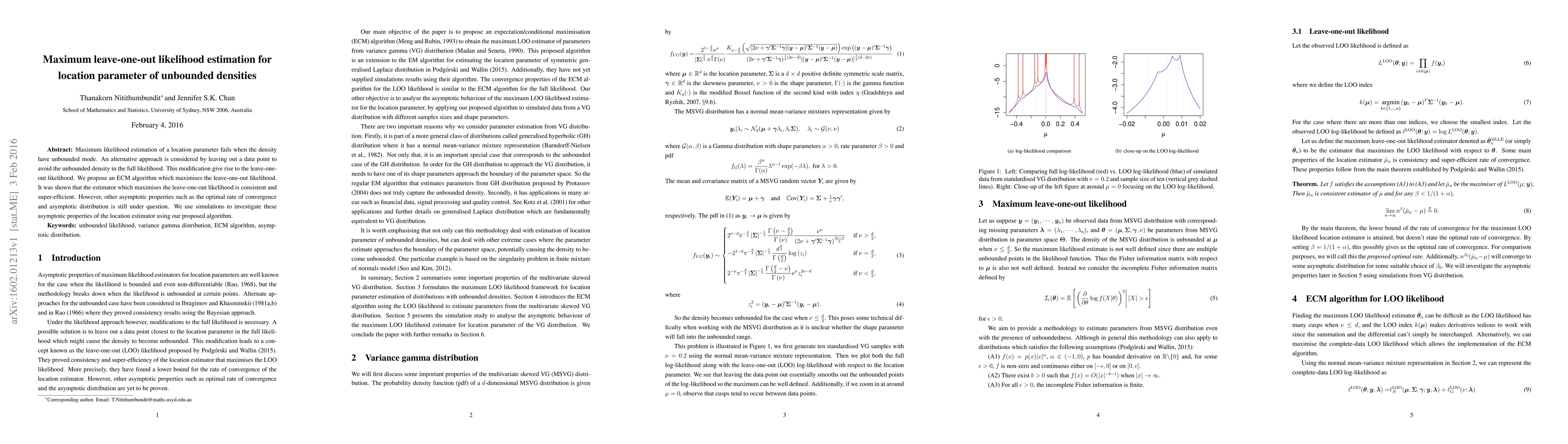 This paper proposes an ECM algorithm to maximize the leave-one-out likelihood for estimating location parameters when traditional maximum likelihood fails due to unbounded densities. The proposed estimator is shown to be consistent and super-efficient, though further research is needed to determine its optimal rate of convergence and asymptotic distribution.