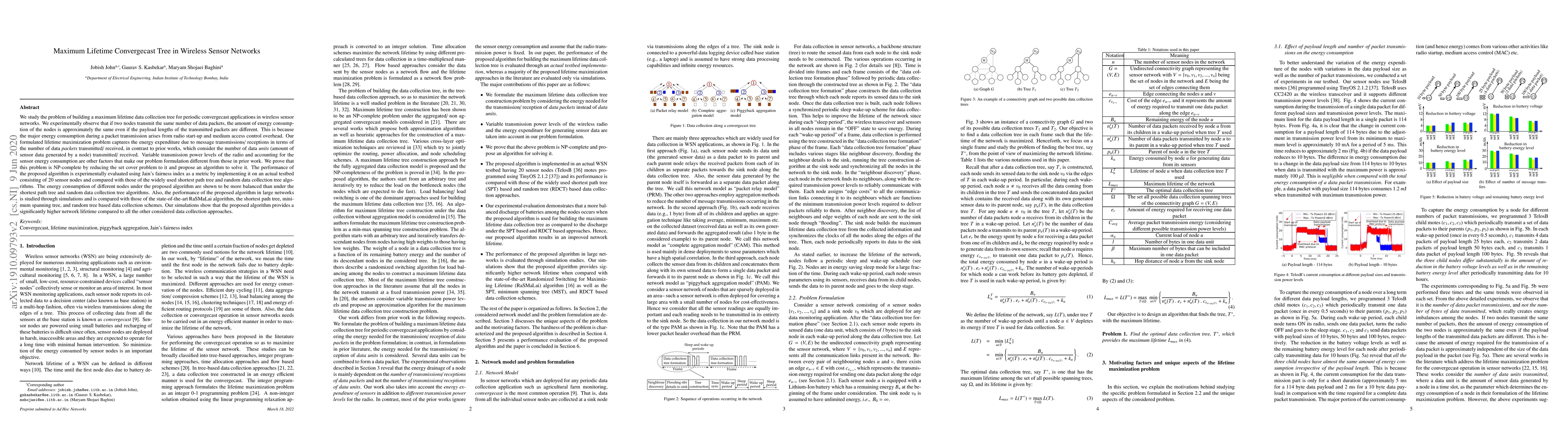 We study the problem of building a maximum lifetime data collection tree for periodic convergecast applications in wireless sensor networks. We experimentally observe that if two nodes transmit same number of data packets, the amount of energy consumption of the nodes is approximately the same even if the payload lengths of the transmitted packets are different. This is because the major energy consumption during a packet transmission arises from radio start-up and medium access control overhead. Our formulated lifetime maximization problem captures the energy expenditure due to message transmissions/ receptions in terms of the number of data packets transmitted/ received, in contrast to prior works, which consider the number of data units (amount of sensor data generated by a node) transmitted/ received. Variable transmission power levels of the radio and accounting for the sensor energy consumption are other factors that make our problem formulation different from those in prior work. We prove that this problem is NP-complete and propose an algorithm to solve it. The performance of the proposed algorithm is experimentally evaluated using Jain's fairness index as a metric by implementing it on an actual testbed consisting of 20 sensor nodes and compared with those of the widely used shortest path tree (SPT) and random data collection tree (RDCT) algorithms. The energy consumption of different nodes under the proposed algorithm are shown to be more balanced than under SPT and RDCT algorithms. Also, the performance of the proposed algorithm in large networks is studied through simulations and is compared with those of the state-of-the-art RaSMaLai algorithm, SPT, minimum spanning tree, and RDCT based data collection schemes. Our simulations show that the proposed algorithm provides a significantly higher network lifetime compared to all the other considered data collection approaches.