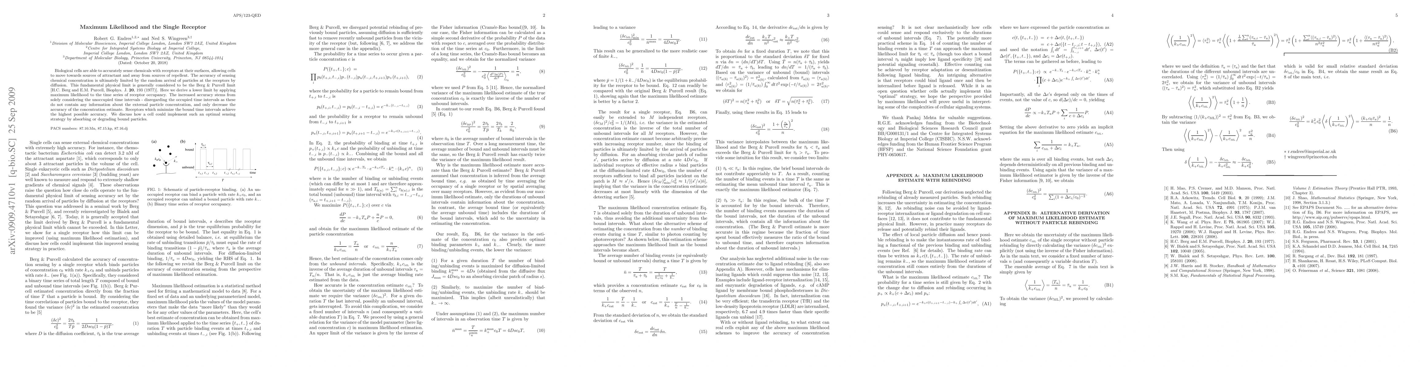 Biological cells are able to accurately sense chemicals with receptors at their surfaces, allowing cells to move towards sources of attractant and away from sources of repellent. The accuracy of sensing chemical concentration is ultimately limited by the random arrival of particles at the receptors by diffusion. This fundamental physical limit is generally considered to be the Berg & Purcell limit [H.C. Berg and E.M. Purcell, Biophys. J. {\bf 20}, 193 (1977)]. Here we derive a lower limit by applying maximum likelihood to the time series of receptor occupancy. The increased accuracy stems from solely considering the unoccupied time intervals - disregarding the occupied time intervals as these do not contain any information about the external particle concentration, and only decrease the accuracy of the concentration estimate. Receptors which minimize the bound time intervals achieve the highest possible accuracy. We discuss how a cell could implement such an optimal sensing strategy by absorbing or degrading bound particles.