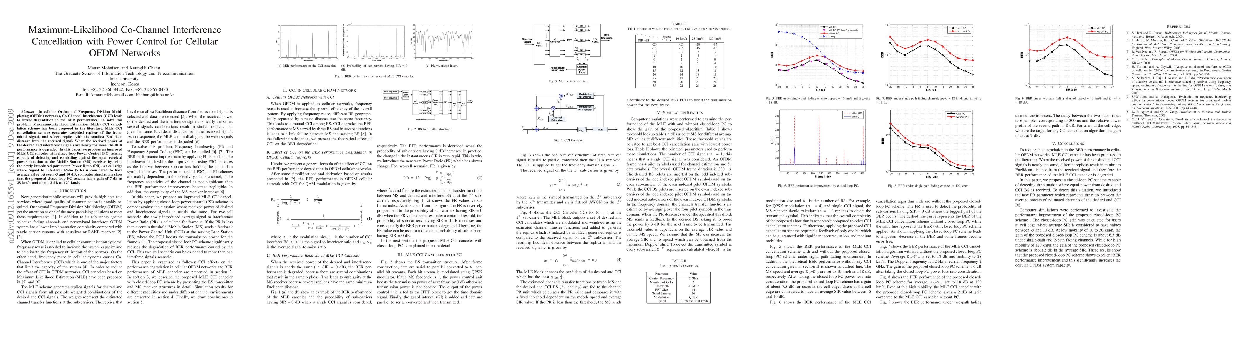 In cellular Orthogonal Frequency Division Multiplexing (OFDM) networks, Co-Channel Interference (CCI) leads to severe degradation in the BER performance. To solve this problem, Maximum-Likelihood Estimation (MLE) CCI cancellation scheme has been proposed in the literature. MLE CCI cancellation scheme generates weighted replicas of the transmitted signals and selects replica with the smallest Euclidean distance from the received signal. When the received power of the desired and interference signals are nearly the same, the BER performance is degraded. In this paper, we propose an improved MLE CCI canceler with closed-loop Power Control (PC) scheme capable of detecting and combating against the equal received power situation at the Mobile Station (MS) receiver by using the newly introduced parameter Power Ratio (PR). At cell edge where Signal to Interferer Ratio (SIR) is considered to have average value between -5 and 10 dB, computer simulations show that the proposed closed-loop PC scheme has a gain of 7 dB at 28 km/h and about 2 dB at 120 km/h.