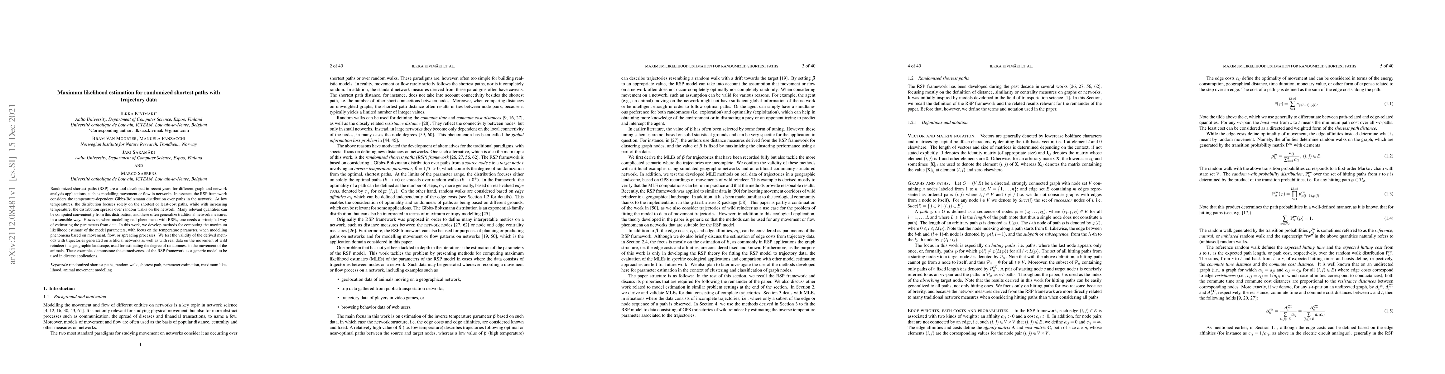 This research develops methods for computing the maximum likelihood estimate (MLE) of model parameters in the randomized shortest paths (RSP) framework, focusing on the temperature parameter β, for modeling phenomena like movement, flow, or spreading processes in networks.