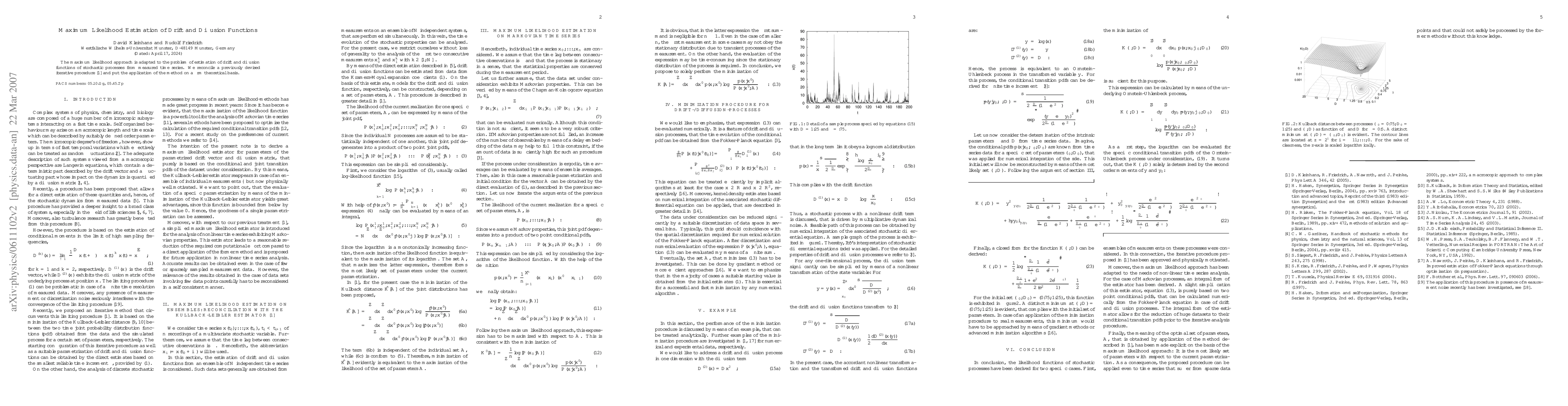 This paper presents a maximum likelihood method to estimate drift and diffusion functions of stochastic processes from time series data, building on a previously proposed iterative procedure.