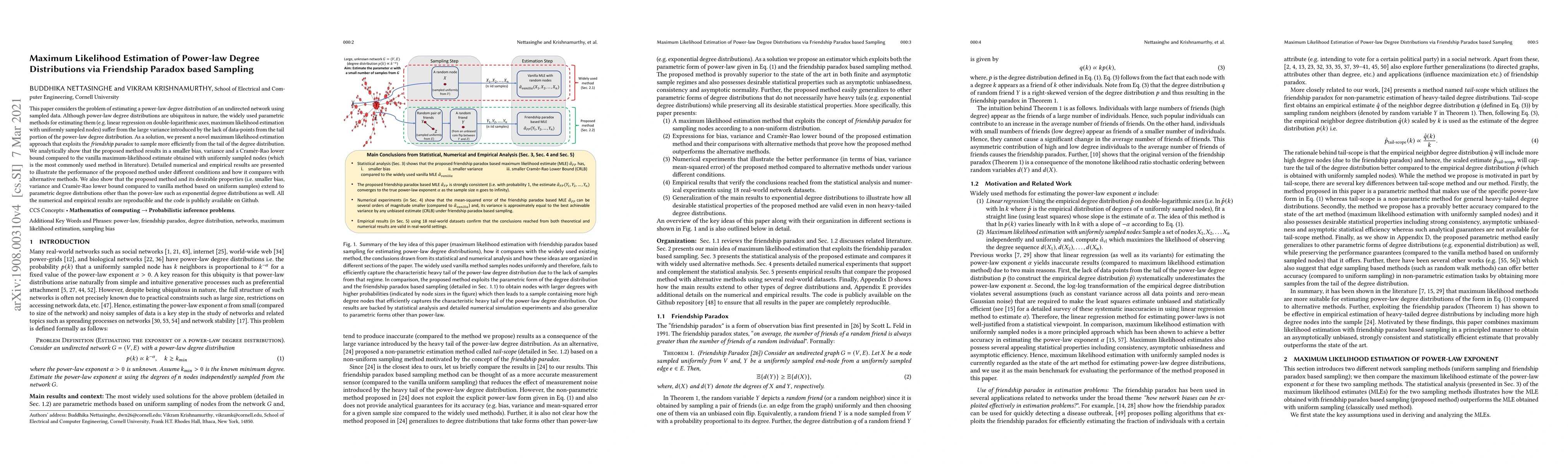 This paper considers the problem of estimating a power-law degree distribution of an undirected network using sampled data. Although power-law degree distributions are ubiquitous in nature, the widely used parametric methods for estimating them (e.g. linear regression on double-logarithmic axes, maximum likelihood estimation with uniformly sampled nodes) suffer from the large variance introduced by the lack of data-points from the tail portion of the power-law degree distribution. As a solution, we present a novel maximum likelihood estimation approach that exploits the friendship paradox to sample more efficiently from the tail of the degree distribution. We analytically show that the proposed method results in a smaller bias, variance and a Cramer-Rao lower bound compared to the vanilla maximum-likelihood estimate obtained with uniformly sampled nodes (which is the most commonly used method in literature). Detailed numerical and empirical results are presented to illustrate the performance of the proposed method under different conditions and how it compares with alternative methods. We also show that the proposed method and its desirable properties (i.e. smaller bias, variance and Cramer-Rao lower bound compared to vanilla method based on uniform samples) extend to parametric degree distributions other than the power-law such as exponential degree distributions as well. All the numerical and empirical results are reproducible and the code is publicly available on Github.