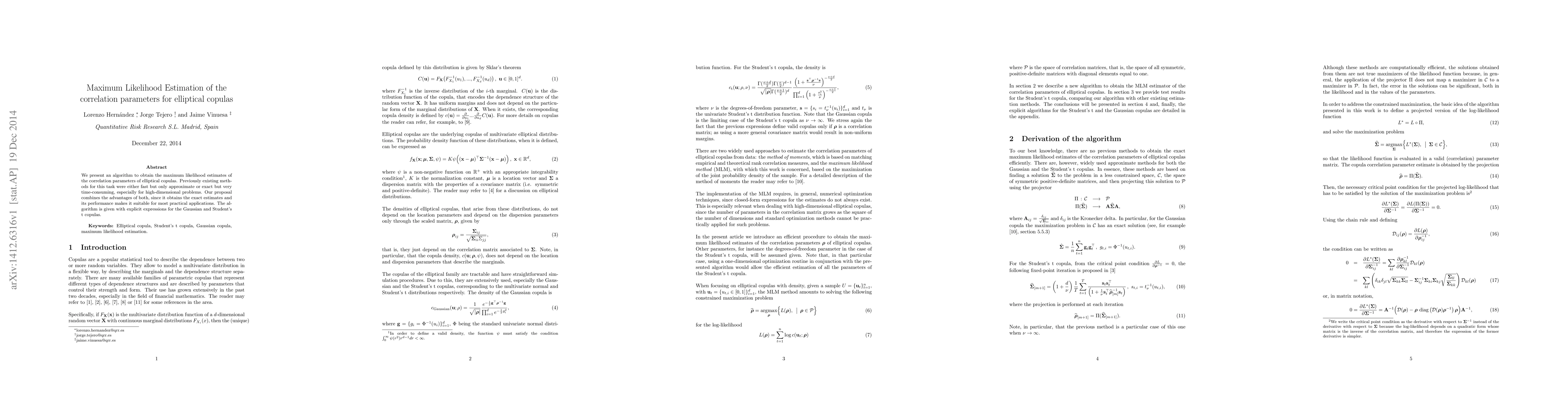 Researchers developed an efficient algorithm to estimate correlation parameters for elliptical copulas, balancing speed with accuracy, making it suitable for most practical applications.