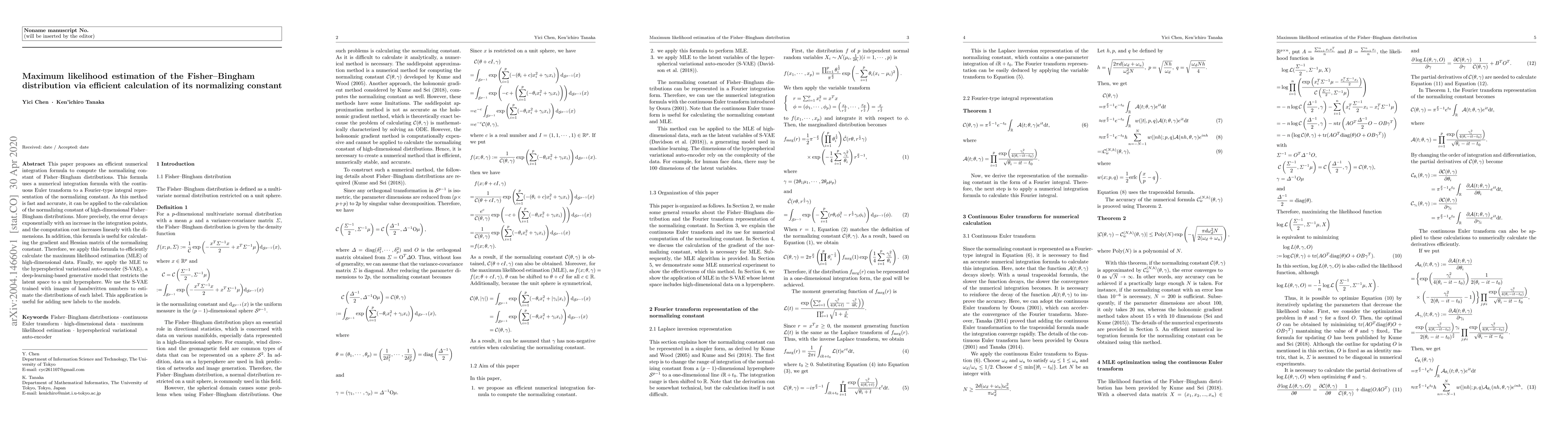 This paper introduces an efficient numerical integration method for computing the normalizing constant of Fisher-Bingham distributions, which facilitates maximum likelihood estimation (MLE) for high-dimensional data. The method uses a continuous Euler transform to achieve fast and accurate results, enabling applications in deep learning models like the hyperspherical variational auto-encoder (S-VAE).