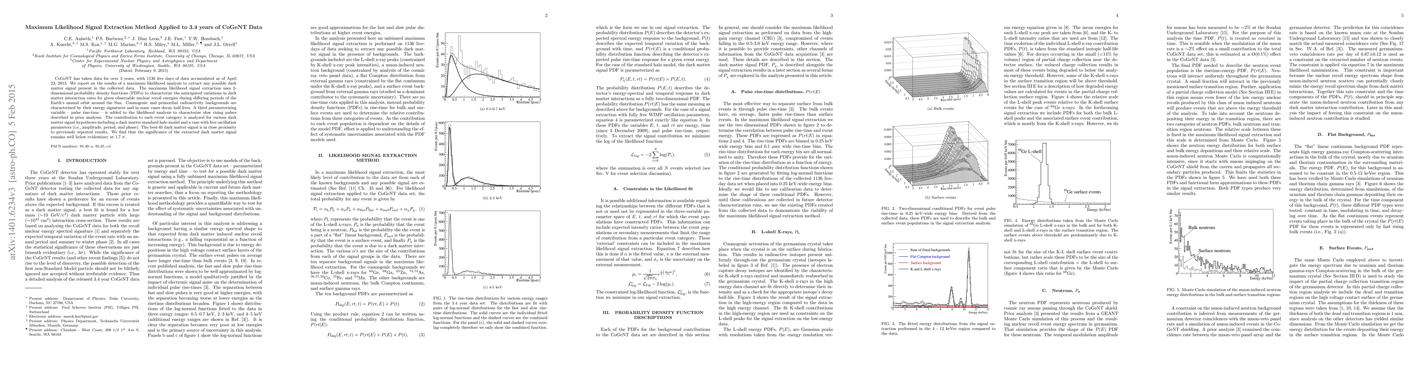 Researchers analyzed 3.4 years of CoGeNT data using a maximum likelihood method to search for dark matter signals. They found evidence of a signal at 1.7 sigma significance, but it falls short of being conclusive.