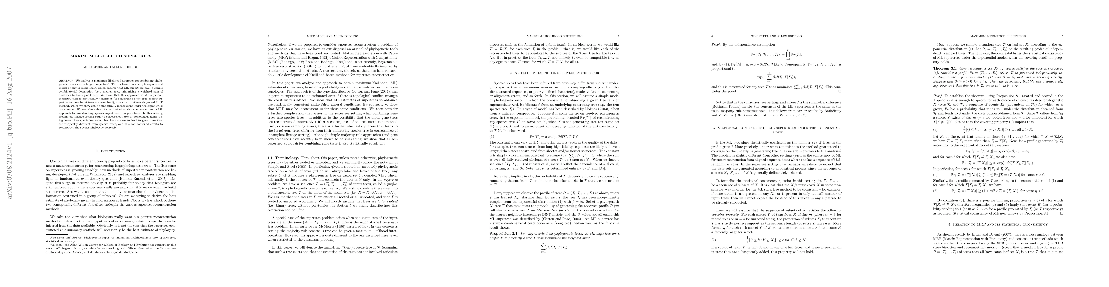 This paper proposes a maximum-likelihood approach for constructing supertrees from phylogenetic trees, demonstrating statistical consistency under an exponential error model. Unlike the MRP method, this approach reliably converges to the true species supertree, even in the presence of incomplete lineage sorting.