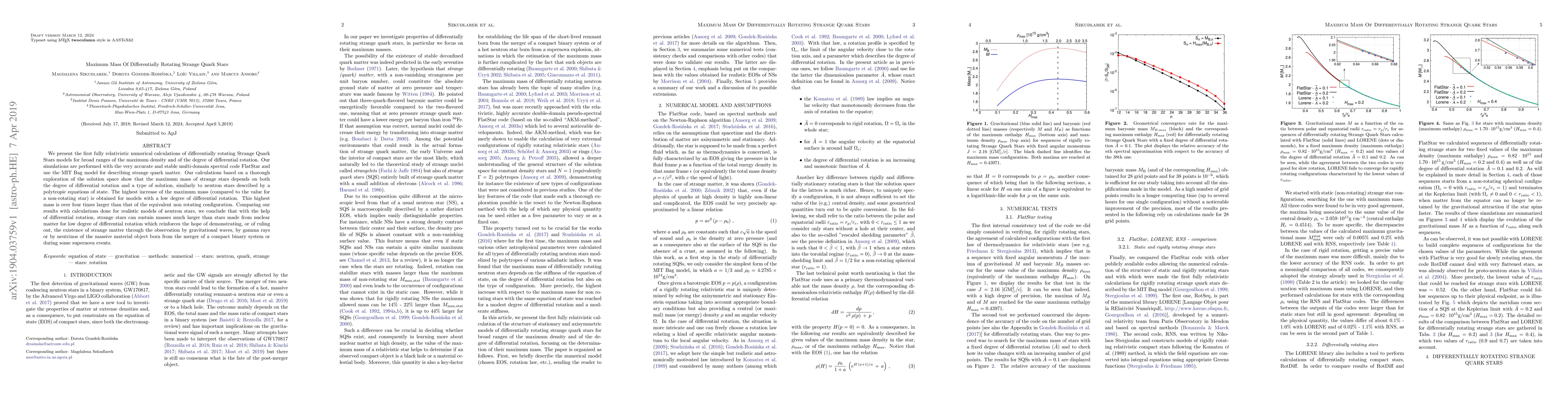 This paper presents the first fully relativistic numerical calculations of differentially rotating strange quark stars, showing that their maximum mass depends on both the degree of differential rotation and the type of solution. The highest mass is over four times greater than that of a non-rotating star, suggesting that differential rotation can significantly increase the mass of strange stars, potentially aiding in their detection through gravitational waves or other astrophysical observations.
