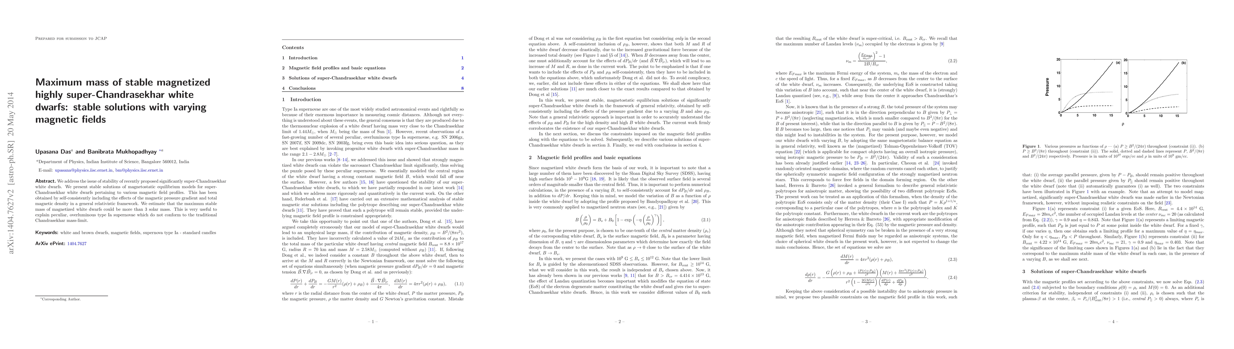 This paper investigates the stability of super-Chandrasekhar white dwarfs with strong magnetic fields, finding stable magnetostatic equilibrium solutions that allow for a maximum mass exceeding 3 solar masses. The results provide a potential explanation for peculiar, overluminous type Ia supernovae.
