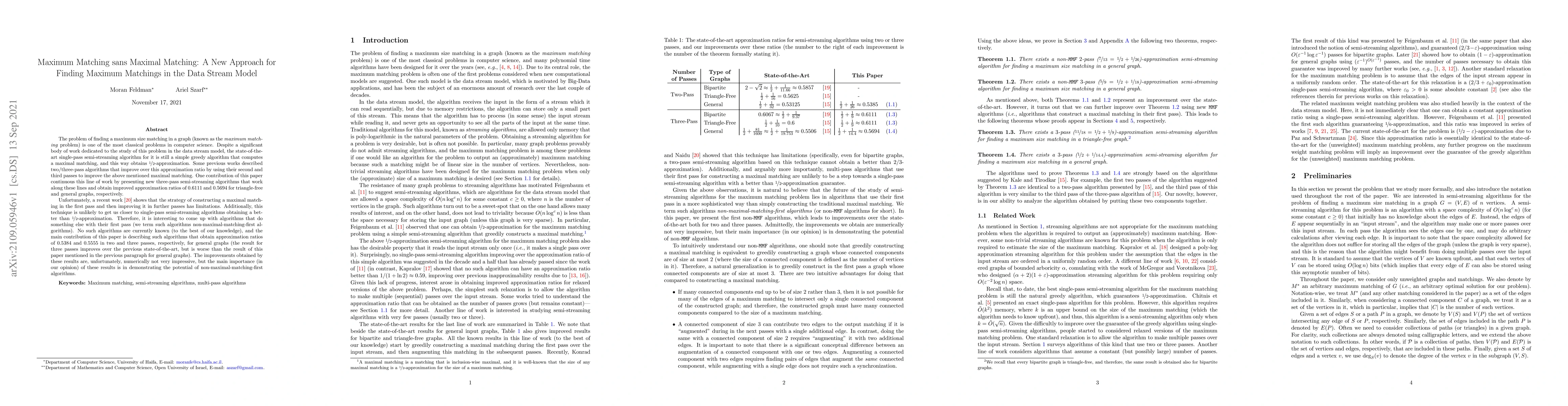 The problem of finding a maximum size matching in a graph (known as the maximum matching problem) is one of the most classical problems in computer science. Despite a significant body of work dedicated to the study of this problem in the data stream model, the state-of-the-art single-pass semi-streaming algorithm for it is still a simple greedy algorithm that computes a maximal matching, and this way obtains 1/2-approximation. Some previous works described two/three-pass algorithms that improve over this approximation ratio by using their second and third passes to improve the above mentioned maximal matching. One contribution of this paper continuous this line of work by presenting new three-pass semi-streaming algorithms that work along these lines and obtain improved approximation ratios of 0.6111 and 0.5694 for triangle-free and general graphs, respectively. Unfortunately, a recent work (Konrad and Naidu, 2021) shows that the strategy of constructing a maximal matching in the first pass and then improving it in further passes has limitations. Additionally, this technique is unlikely to get us closer to single-pass semi-streaming algorithms obtaining a better than 1/2-approximation. Therefore, it is interesting to come up with algorithms that do something else with their first pass (we term such algorithms non-maximal-matching-first algorithms). No such algorithms are currently known (to the best of our knowledge), and the main contribution of this paper is describing such algorithms that obtain approximation ratios of 0.5384 and 0.5555 in two and three passes, respectively, for general graphs (the result for three passes improves over the previous state-of-the-art, but is worse than the result of this paper mentioned in the previous paragraph for general graphs).