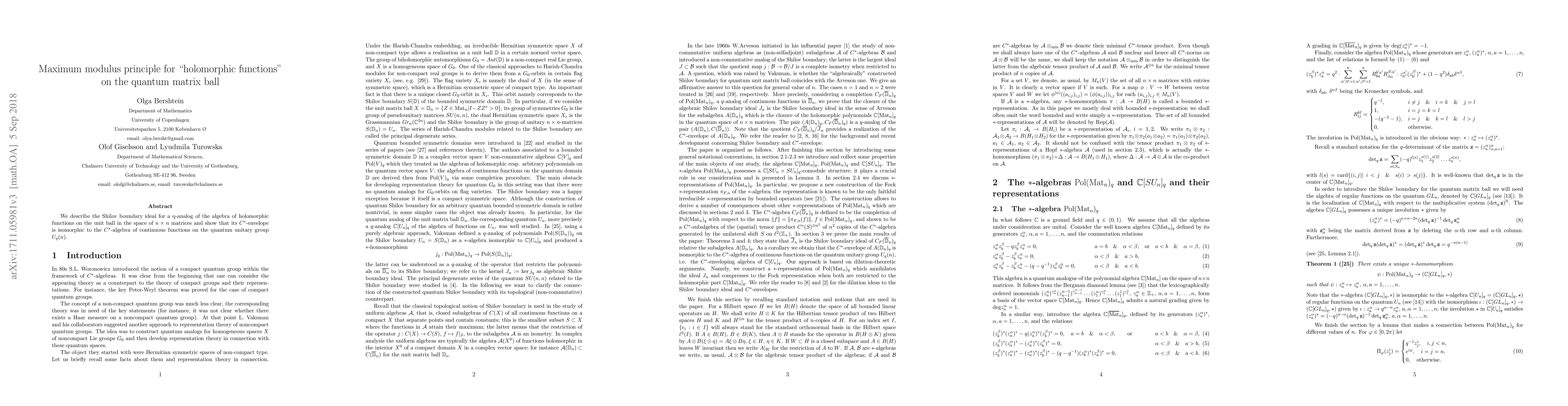 Summary: This paper explores the Shilov boundary ideal for a q-analog of holomorphic functions on the quantum matrix ball, demonstrating its $C^*$-envelope is isomorphic to the $C^*$-algebra of continuous functions on the quantum unitary group $U_q(n)$.