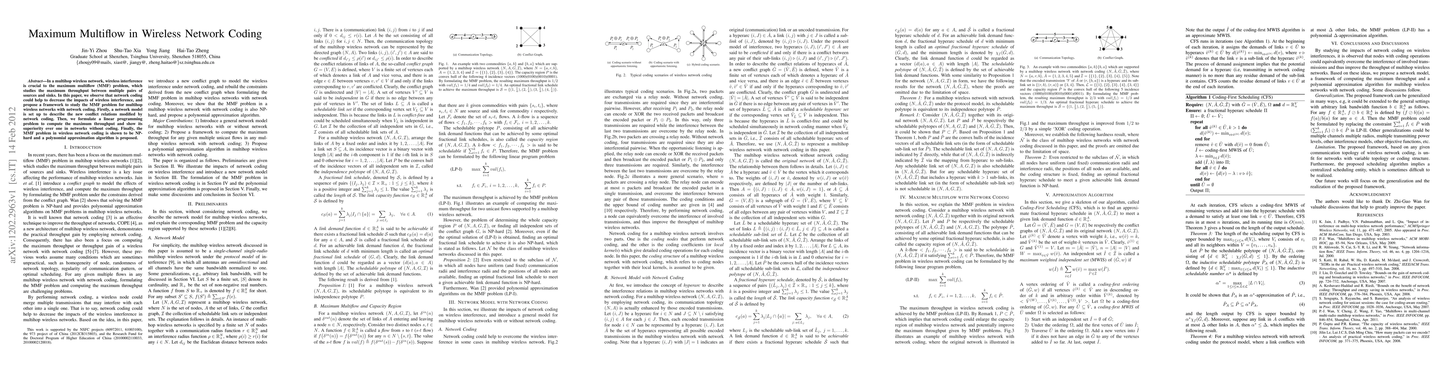 A novel approach to computing maximum throughput in multihop wireless networks with network coding is presented.