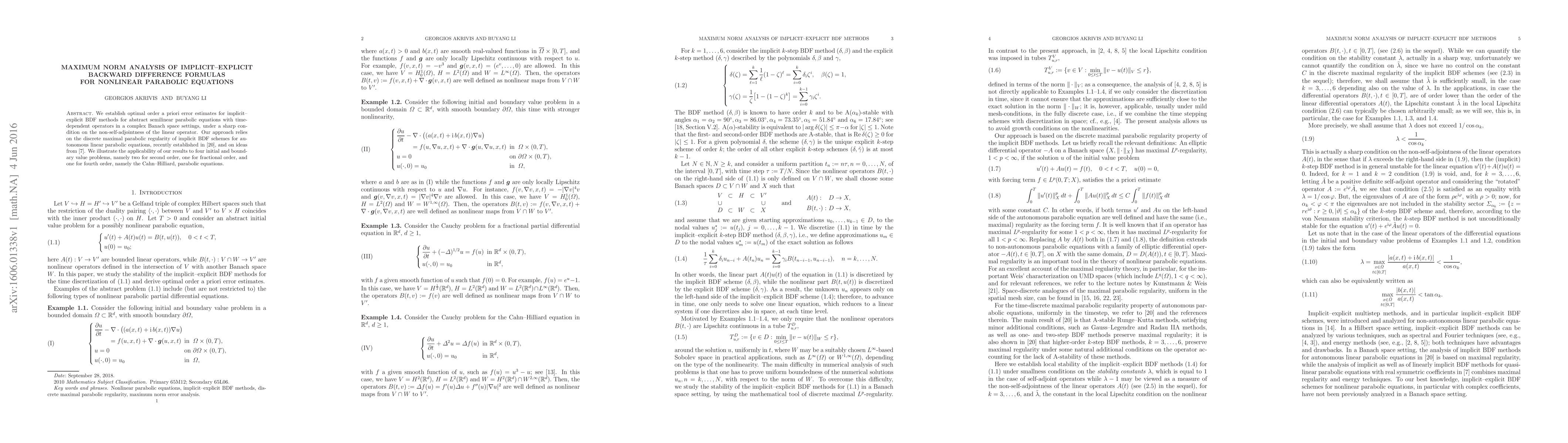 We establish optimal order a priori error estimates for implicit-explicit BDF methods for abstract semilinear parabolic equations with time-dependent operators in a complex Banach space settings, under a sharp condition on the non-self-adjointness of the linear operator. Our approach relies on the discrete maximal parabolic regularity of implicit BDF schemes for autonomous linear parabolic equations, recently established in [20], and on ideas from [7]. We illustrate the applicability of our results to four initial and boundary value problems, namely two for second order, one for fractional order, and one for fourth order, namely the Cahn-Hilliard, parabolic equations.