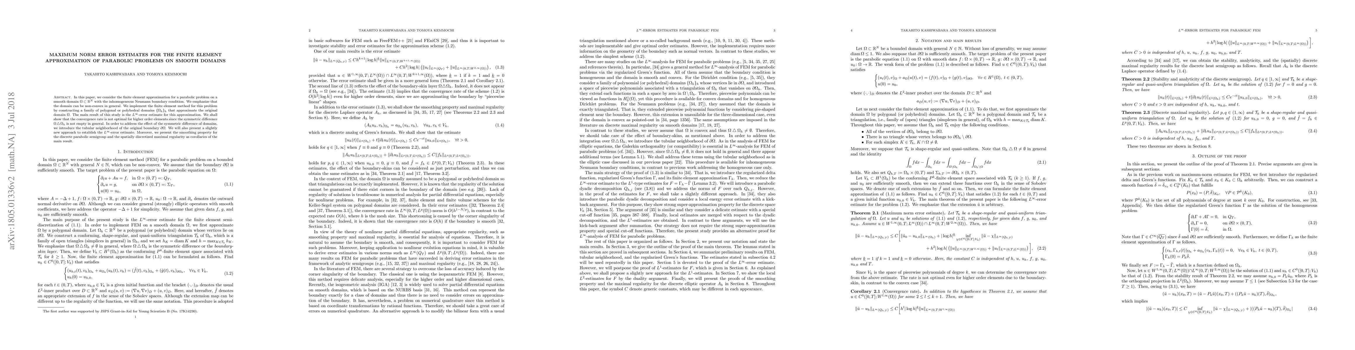 This paper investigates finite element approximations for parabolic problems on smooth, potentially non-convex domains, focusing on $L^\infty$-error estimates. It introduces a tubular neighborhood to address the effect of domain differences and presents a new approach to establish the error estimate, along with corollary results on the discrete parabolic semigroup and maximal regularity.