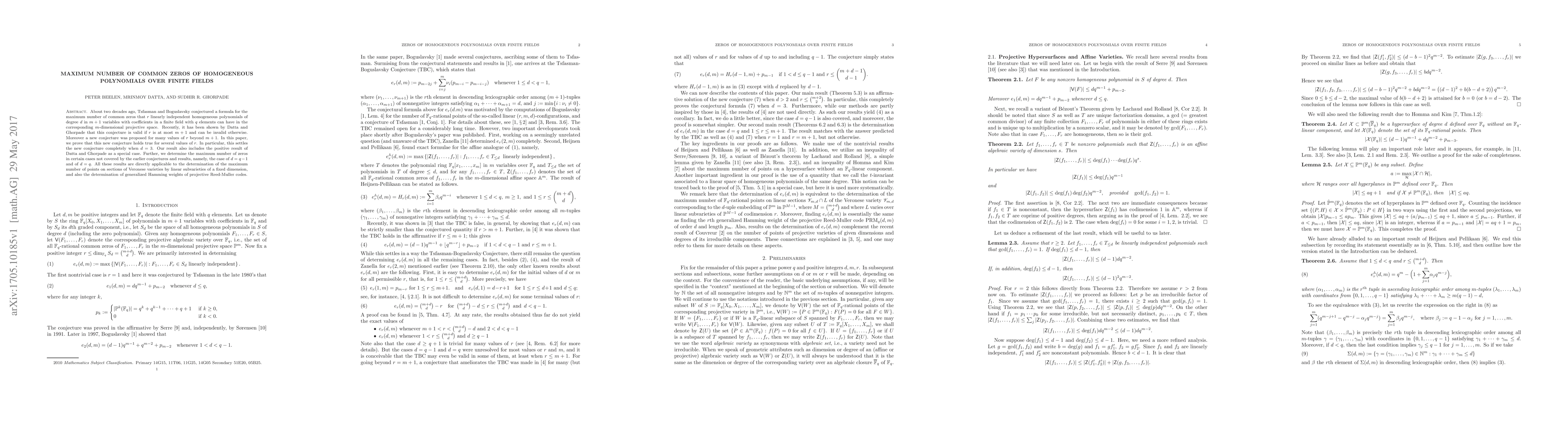 Researchers prove a new conjecture about maximum common zeros of homogeneous polynomials over finite fields, settling it for certain values of variables and degrees, with implications for projective geometry and coding theory.